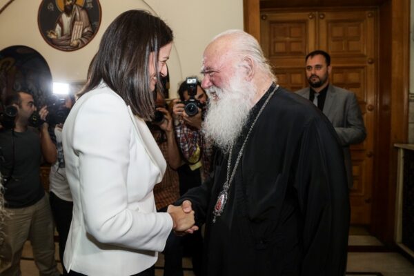 2) 23/8/2019 Εθιμοτυπική επίσκεψη στην υπουργό Παιδείας κ. Νίκη Κεραμέως πραγματοποίησε ο Αρχιεπίσκοπος Αθηνών και πάσης Ελλάδος κ. Ιερώνυμος