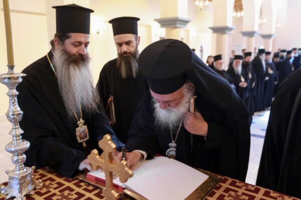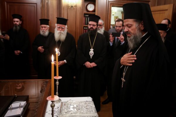4) 27/8/2019 Η Διαβεβαίωση του Αρχιμανδρίτη κ. Νικοδήμου Φαρμάκη, νέου Γενικού Διευθυντού της Εκκλησιαστικής Κεντρικής Υπηρεσίας της Εκκλησίας της Ελλάδος (Ε.Κ.Υ.Ο.)., στον οποίο ο Μακαριώτατος Πρόεδρος και τα Μέλη της Ιεράς Συνόδου ευχήθηκαν καλή και καρποφόρο διακονία