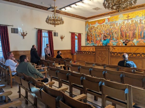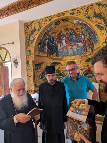 Τα μέλη της αντιπροσωπείας υποδέχθηκε ο Διευθυντής του Διορθοδόξου Κέντρου Πανιερωτάτος Μητροπολίτης Θερμοπυλών κ. Ιωάννης και ακολούθως είχαν την ευκαιρία να πληροφορηθούν για το έργο του Διορθοδόξου Κέντρου και για την ιστορία της Ιεράς Μονής Πεντέλης.