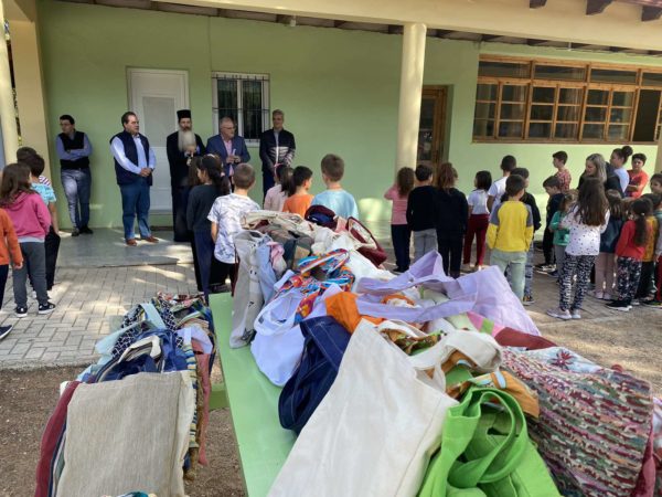 Παράλληλα ο Σεβασμιώτατος και ο κ. Δήμτσας επισκέφθηκαν το Νηπιαγωγείο και το Δημοτικό Σχολείο των Λουτρών Υπάτης και μαζί με τις εγκάρδιες ευχές τους, διένειμαν στα παιδιά σχολικές τσάντες και άλλα δώρα.