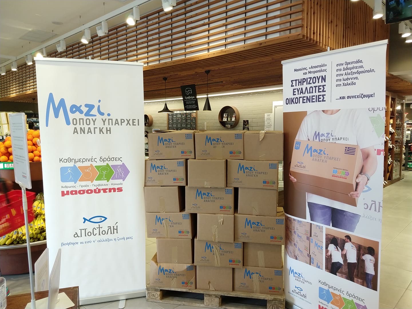 Μέσα σε αυτήν την δύσκολη περίοδο που διανύουμε λόγω της πανδημίας, τις άγιες αυτές μέρες του Πάσχα, η «ΑΠΟΣΤΟΛΗ» και ο «Μασούτης» ενώνουν πάλι τις δυνάμεις τους για να βρεθούνε “Μαζί, όπου υπάρχει ανάγκη”. Στο πλαίσιο του προγράμματος συνεργασίας «Μαζί, όπου υπάρχει ανάγκη», που πραγματοποιούν για τέταρτη συνεχή χρονιά, η «ΑΠΟΣΤΟΛΗ» και ο Μασούτης μοίρασαν 1.040 «δέματα αγάπης» σε οικογένειες που αντιμετωπίζουν οικονομικές δυσκολίες στις ακριτικές περιοχές της Θράκης καθώς και στην Αθήνα. Συγκεκριμένα, οι διανομές πραγματοποιήθηκαν στις εξής πόλεις: Ορεστιάδα, Διδυμότειχο, Ξάνθη, Κομοτηνή, Αλεξανδρούπολη, Ιωάννινα και Αθήνα.