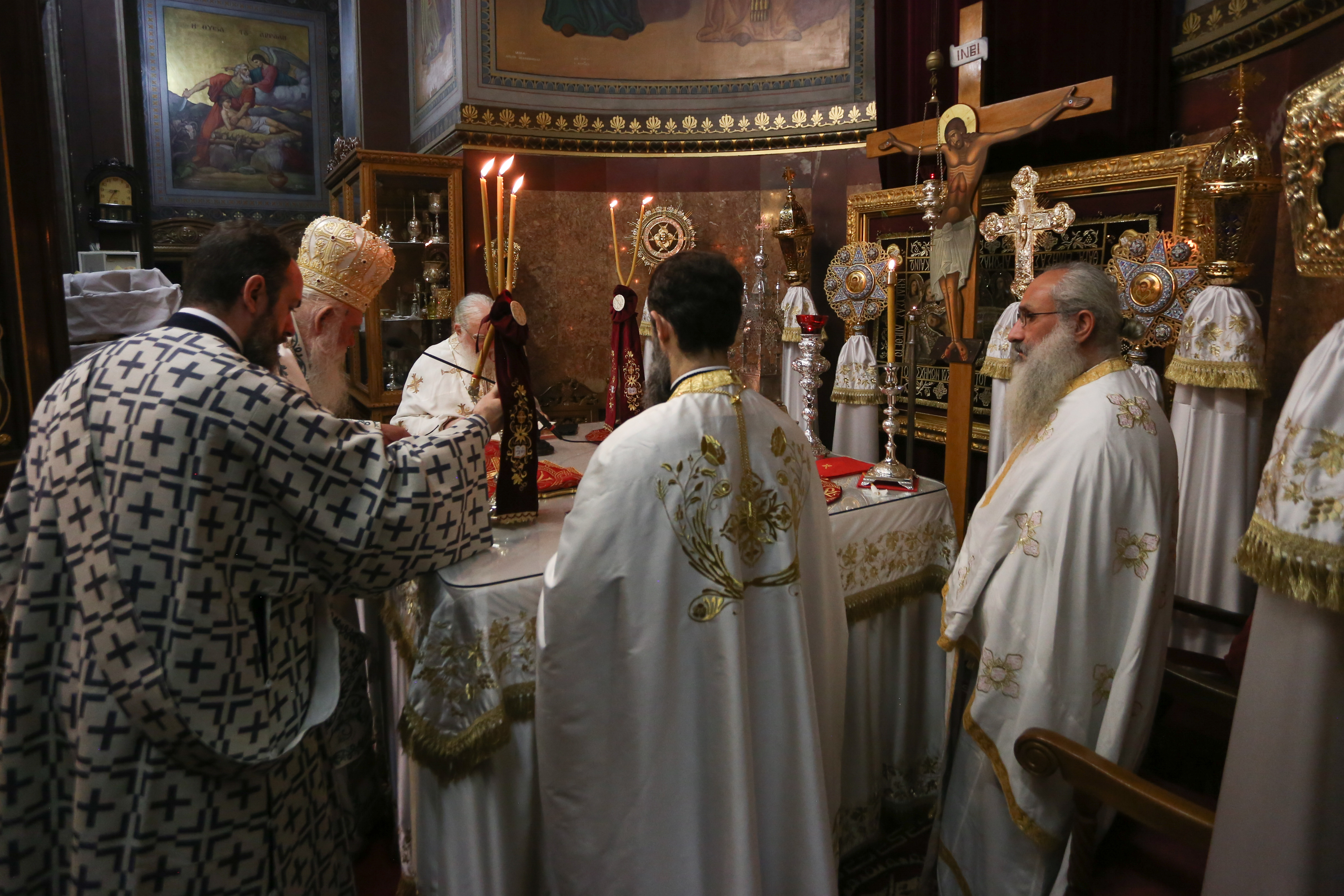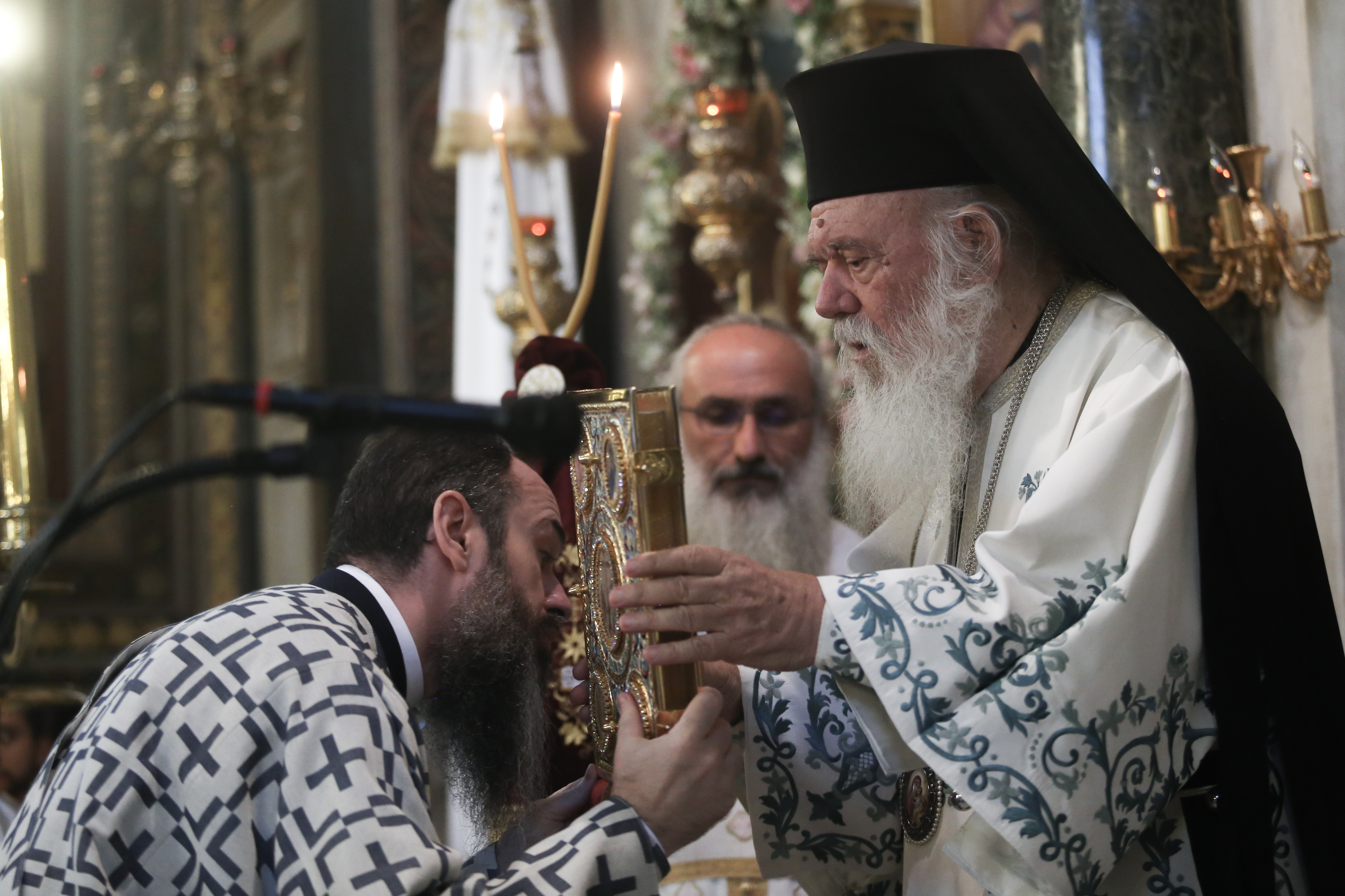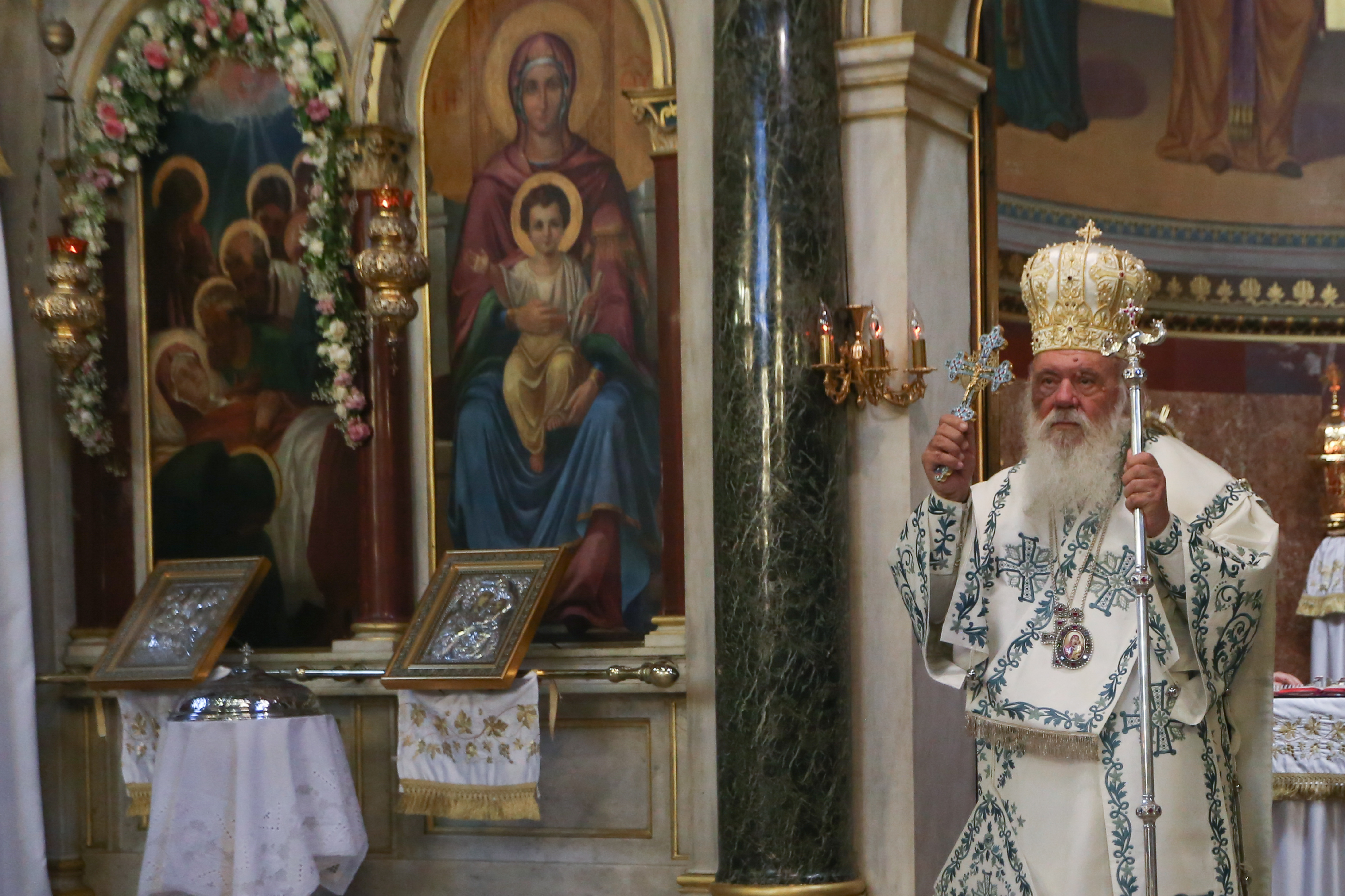 Ο Αρχιεπίσκοπος Αθηνών και Πάσης Ελλάδος κ.κ. Ιερώνυμος, τέλεσε το πρωί το μυστήριο της Θείας Ευχαριστίας στον ιστορικό Ιερό Ναό της Κοιμήσεως της Θεοτόκου της Χρυσοσπηλαιωτίσσης, που βρίσκεται στην οδό Αιόλου, στο κέντρο της Αθήνας, ανήμερα της Μεγάλης Θεομητορικής Εορτής της Κοιμήσεως της Θεοτόκου.