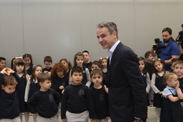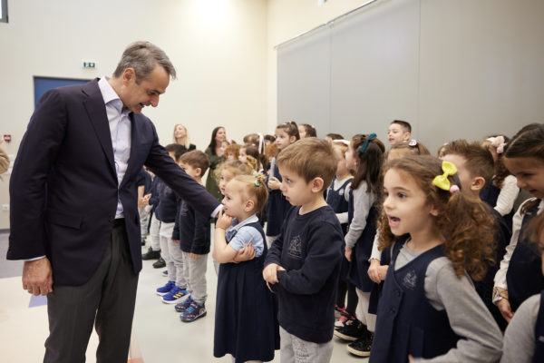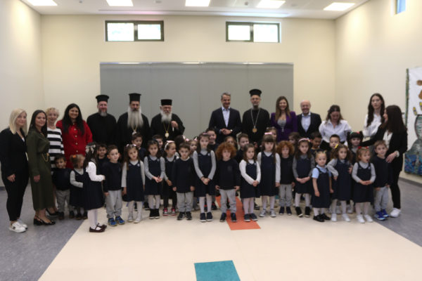 Πρώτος σταθμός της επίσκεψης Αρχιεπισκόπου-Πρωθυπουργού ήταν ο Παιδικός Σταθμός – Νηπιαγωγείο “Ευαγγελισμός της Θεοτόκου”. Λίγο μετά τις 11:30 π.μ. έφτασε στον πρώτο σταθμό της κοινής συνάντησης ο κ. Μητσοτάκης. Τους υποδέχθηκαν οι μικροί μαθητές μαζί με τους εκπαιδευτικούς τους στους οποίος ο Αρχιεπίσκοπος και ο Πρωθυπουργός ευχήθηκαν για το Πάσχα.