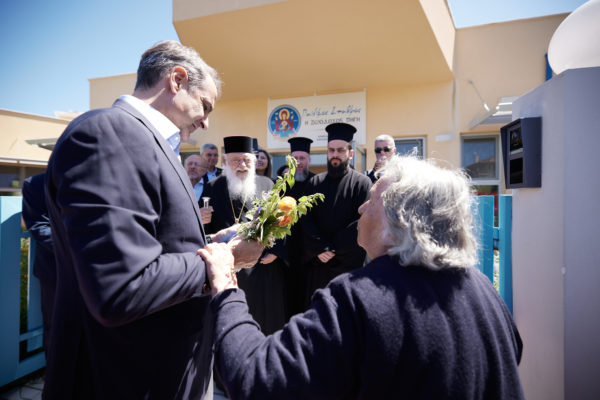 Εκκλησία και πολιτεία συνεργαζόμαστε για να μπορούμε να κάνουμε τέτοια έργα όπως αυτά εδώ και να τα καμαρώνουμε. Σας ευχαριστούμε που είστε και σήμερα κοντά μας”, είπε ο Αρχιεπίσκοπος προς τον κ. Μητσοτάκη.