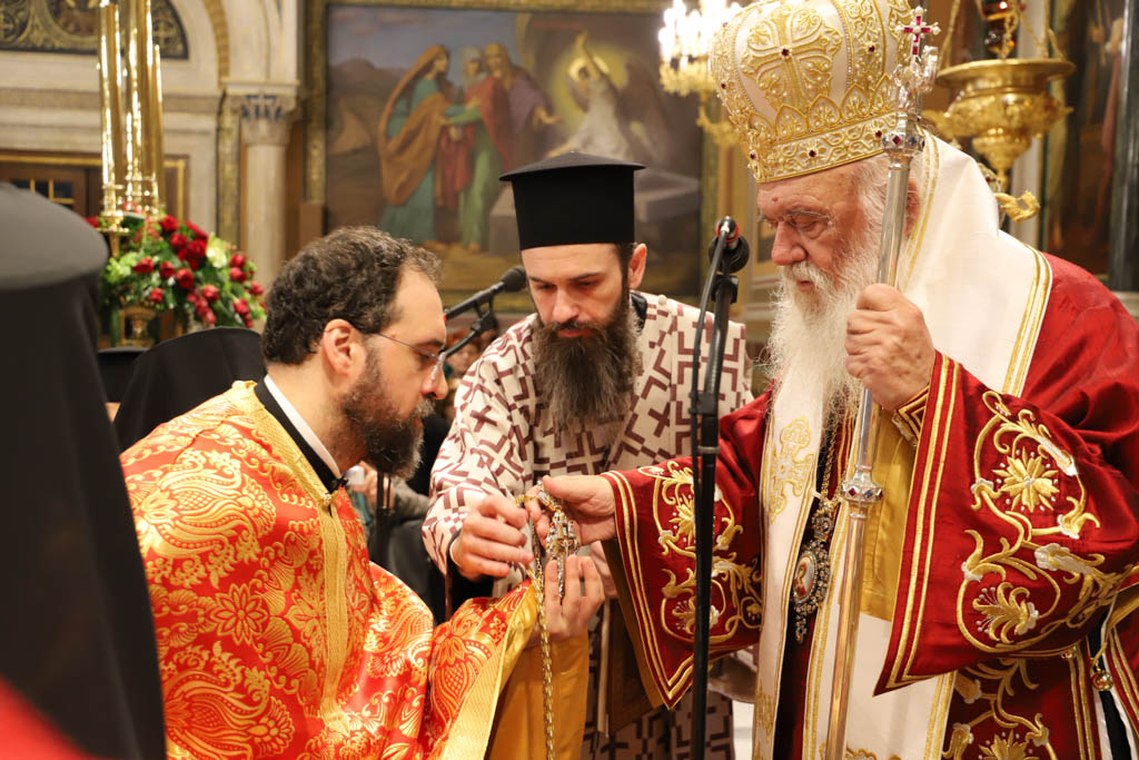 Λίγο πριν το τέλος της θείας λειτουργίας ο Αρχιεπίσκοπος έδωσε στον νεοχειροτονηθέντα το οφίκκιο του Αρχιμανδρίτη.