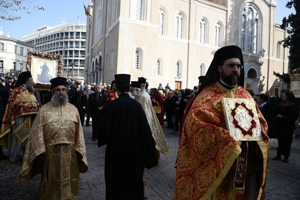 Στον Ιερό Μητροπολιτικό Ναό Αθηνών επί τη εορτή της Αγίας Φιλοθέης της Αθηναίας προεξάρχει της πανηγυρικής Θείας Λειτουργίας ο Αρχιεπίσκοπος Αθηνών και πάσης Ελλάδος κ.κ Ιερώνυμος πλαισιούμενος από τον Μητροπολίτη Θερμοπυλών Ιωάννη , τον Επίσκοπο Θεσπιών Συμεών και κληρικούς της Ιεράς Αρχιεπισκοπής.