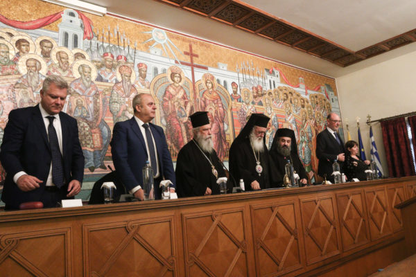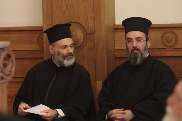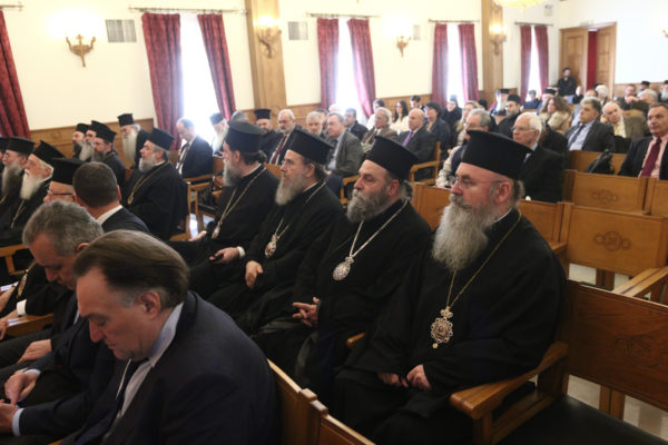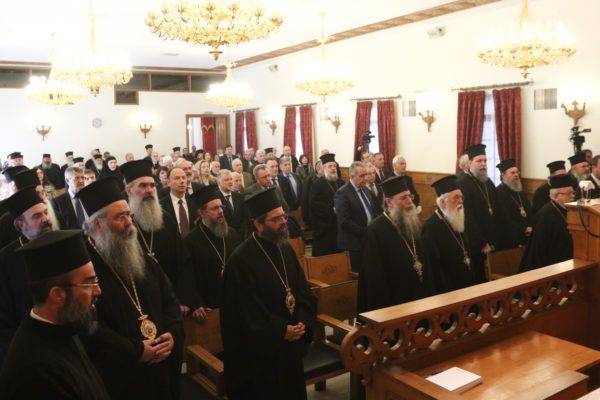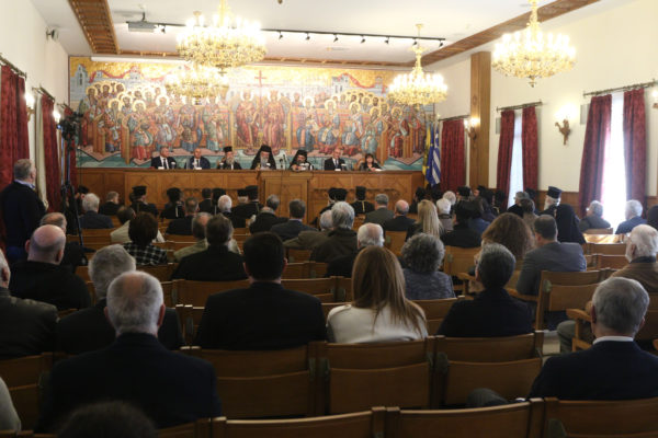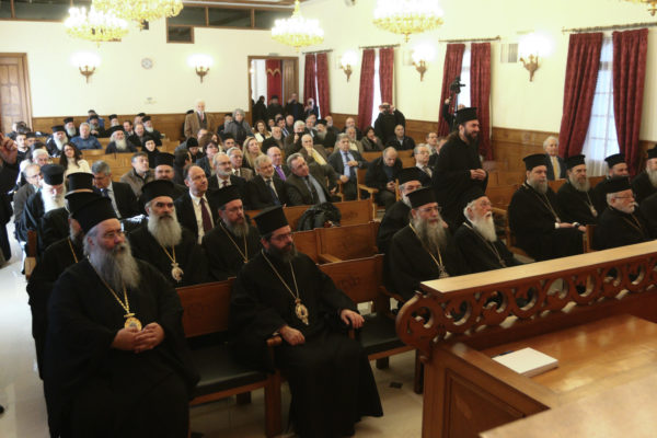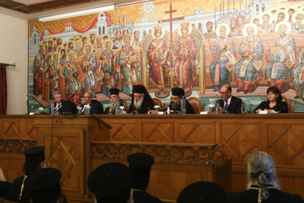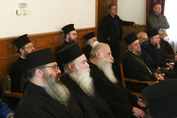 Στην αίθουσα του Διορθοδόξου Κέντρου της Εκκλησίας της Ελλάδος, το οποίο στεγάζεται σε χώρους της Ιεράς Μονής Κοιμήσεως της Θεοτόκου Πεντέλης, ακολούθησε η καθιερωμένη κοινή σύσκεψη της Ιεράς Συνόδου με τους Καθηγητές των Θεολογικών Σχολών Αθηνών και Θεσσαλονίκης και της Ανωτάτης Εκκλησιαστικής Ακαδημίας Αθηνών.