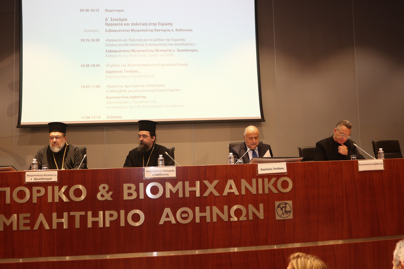 Κατά την Ημερίδα ομίλησαν κατά σειρά: ο Σεβασμιώτατος Μητροπολίτης Μεσσηνίας κ. Χρυσόστομος, Καθηγητής της Θεολογικής Σχολής του ΕΚΠΑ, ο κ. Δημήτριος Τσιόδρας, Δημοσιογράφος Ευρωβουλευτής, ο κ. Κωνσταντίνος Αρβανίτης, Δημοσιογράφος, Ευρωβουλευτής, Αντιπρόεδρος της Left στο Ευρωπαϊκό Κοινοβούλιο, Δημητριάδος και Αλμυρού κ. Ιγνάτιος, ο κ. Ευάγγελος Βενιζέλος, Ομότιμος Καθηγητής της Νομικής Σχολής του ΑΠΘ, πρώην Αντιπρόεδρος της Κυβέρνησης και Υπουργός Εξωτερικών, ο κ. Σπυρίδων Βλαχόπουλος, Καθηγητής της Νομικής Σχολής του ΕΚΠΑ, Μέλος του Συμβουλίου Διοίκησης του ΕΚΠΑ, ο κ. Σπύρος Παππάς, Νομικός, Πρόεδρος του Διεθνούς Δικτύου Argo -Brussels Hellenic Network, ο Σεβασμιώτατος Μητροπολίτης Ναυπάκτου και Αγίου Βλασίου κ. Ιερόθεος, η κ. Βασιλική Σταθοκώστα, Καθηγήτρια της Θεολογικής Σχολής του ΕΚΠΑ, ο κ. Ευστάθιος Λιανός – Λιάντης, Αναπλ. Καθηγητής Αντιπρόεδρος του Τμήματος Κοινωνικής Θεολογίας της Θεολογικής Σχολής του ΕΚΠΑ, ο κ. Χρήστος Καραγιάννης, Καθηγητής της Θεολογικής Σχολής, Αντιπρύτανης Διοικητικών Υποθέσεων Φοιτητικής Μέριμνας και Διά Βίου Μάθησης του ΕΚΠΑ.