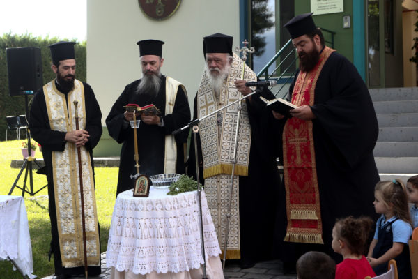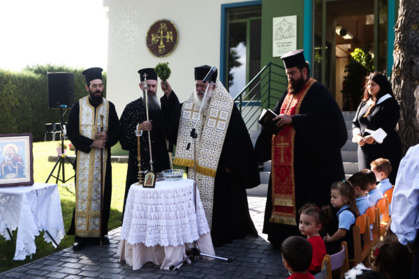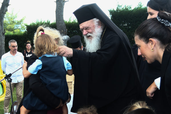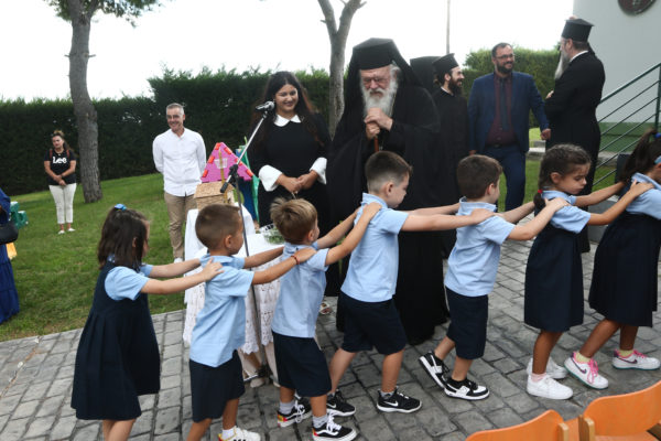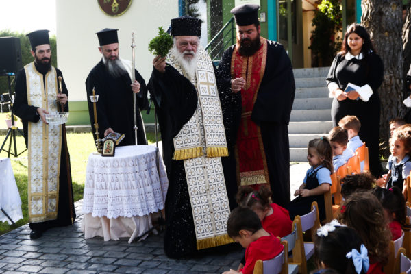 Στον Παιδικό Σταθμό – Νηπιαγωγείο «Ευαγγελισμός της Θεοτόκου» στο Δήλεσι τέλεσε την ακολουθία του αγιασμού με αφορμή την έναρξη της νέας σχολικής χρονιάς ο Αρχιεπίσκοπος Αθηνών και πάσης Ελλάδος κ.κ. Ιερώνυμος. Τον Αρχιεπίσκοπο συνόδευαν ο Γενικός Αρχιερατικός Επίτροπος, Αρχιμανδρίτης Ιάκωβος Ανδριόπουλος και ο Αρχιδιάκονος Ιωάννης Μπούτσης, ενώ τους υποδέχθηκαν η Διευθύντρια του Σχολείου κ. Κατερίνα Ράπτη, το προσωπικό, γονείς και μαθητές.