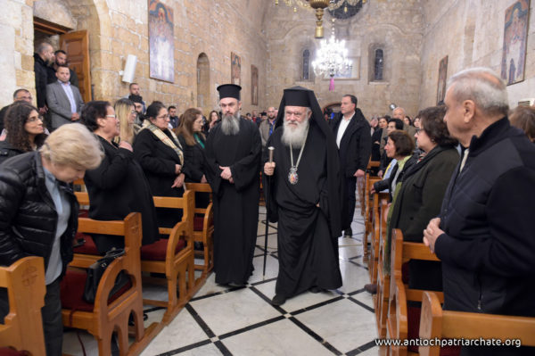 “Αυτό το βουνό του Μπαλαμάντ είναι όαση διδασκαλίας, όαση πνευματική για όλο το Πατριαρχείο μας”, ανέφερε ο κ.κ. Ιωάννης καλωσορίζοντας τον Αρχιεπίσκοπο κ.κ. Ιερώνυμο και τη συνοδεία του. “Εδώ σε αυτό το μοναστήρι από το 1832 ετοιμάζονται ιερείς για το Πατριαρχείο μας. Από τότε η ιερατική σχολή του Πατριαρχείου Αντιοχείας ήταν εδώ σε αυτό το μοναστήρι. Χρόνο με το χρόνο αυτή η σχολή κατέληξε να γίνει η Θεολογική Σχολή του Αγίου Ιωάννου του Δαμασκηνού. Ύστερα ο μακαριστός Πατριάρχης Ιγνάτιος που ήταν ηγούμενος σε αυτό το μοναστήρι πήρε άδεια από το κράτος και ίδρυσε και το πανεπιστήμιο του Μπαλαμάντ”, ανέφερε για την ιστορία της μονής στους χώρους της οποίας βρίσκεται η Θεολογική Σχολή. “Σήμερα ευλογείτε αυτό το μέρος, το Πανεπιστήμιο, τη Θεολογική Σχολή, το σχολείο και όλα τα ιδρύματα του Μπαλαμάντ και ευλογείτε όχι μόνο τους φοιτητές, όχι μόνο τους εργαζομένους σε αυτά τα ιδρύματα μόνο, αλλά και αυτό τον πιστό λαό που βρίσκεται και προσεύχεται σήμερα μαζί μας”, πρόσθεσε.