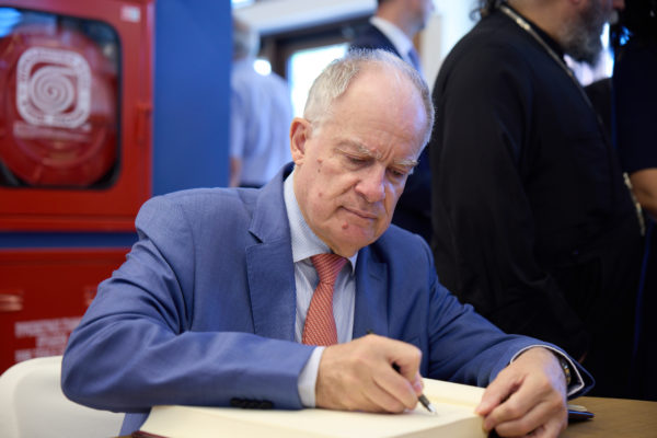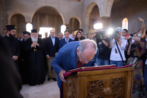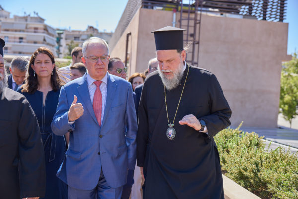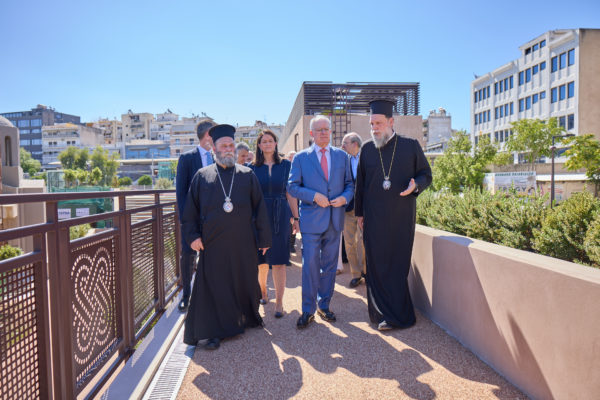 Τον Πρόεδρο της Δημοκρατίας υποδέχθηκε με εγκαρδιότητα ο Μακαριώτατος Αρχιεπίσκοπος Αθηνών και πάσης Ελλάδος κ.κ. Ιερώνυμος, μαζί με τους Σεβασμιωτάτους Μητροπολίτες Ανέων κ. Μακάριο, Ιωαννίνων κ. Μάξιμο και Νέας Ιωνίας, Φιλαδελφείας, Ηρακλείου και Χαλκηδόνος κ. Γαβριήλ, από τους οποίους και ξαναγήθηκε στους χώρους του Κέντρου, καθώς και στο θεματικό πάρκο που το περιβάλλει.