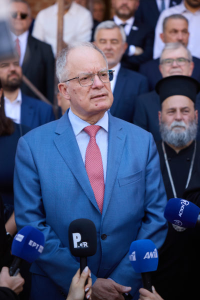 Θα ήθελα να συγχαρώ από την καρδιά μου για αυτή τη σημερινή συγκλονιστική εμπειρία δημιουργίας και συνεργασίας τον Σεβασμιώτατο Μητροπολίτη Νέας Ιωνίας Γαβριήλ, να συγχαρώ τους χορηγούς, την κυρία Λάτση, τον κύριο Μαρτίνο, το Ίδρυμα Σταύρος Νιάρχος, την Τράπεζα Πειραιώς, να αναφερθώ στα κοινοτικά κονδύλια – τα οποία απορροφώνται κατά τρόπο κανονικότατο- και στον Προϋπολογισμό Δημοσίων Επενδύσεων. Όλοι αυτοί οι παράγοντες μαζί με δύο μεγάλες κατασκευαστικές εταιρείες συνεργάστηκαν και έφεραν αυτό το αποτέλεσμα. Γι’ αυτό και στο ξεκίνημα της δηλώσεώς μου μίλησα για το θαύμα δημιουργίας και για τη συνεργασία εκκλησίας και πολιτείας αλλά και χορηγών.
