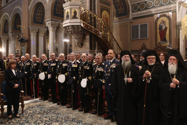 Παρέστησαν, μεταξύ άλλων, ο Πρόεδρος της Βουλής των Ελλήνων, Κωνσταντίνος Τασούλας, υπουργοί και υφυπουργοί της κυβέρνησης, εκπρόσωποι κομμάτων, ο Περιφερειάρχης Αττικής, Νίκος Χαρδαλιάς, ο Δήμαρχος Αθηναίων, Χάρης Δούκας, σύσσωμη η ηγεσία των Ενόπλων Δυνάμεων και των Σωμάτων Ασφαλείας.