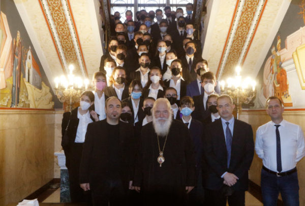 Μαθητές και εκπαιδευτικοί από το Ελληνικό Κολλέγιο Θεσσαλονίκης επισκέφθηκαν σήμερα το μεσημέρι τον Αρχιεπίσκοπο Αθηνών και πάσης Ελλάδος κ.κ. Ιερώνυμο.