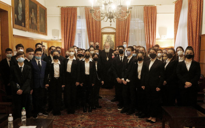 Μαθητές και εκπαιδευτικοί από το Ελληνικό Κολλέγιο Θεσσαλονίκης επισκέφθηκαν σήμερα το μεσημέρι τον Αρχιεπίσκοπο Αθηνών και πάσης Ελλάδος κ.κ. Ιερώνυμο.