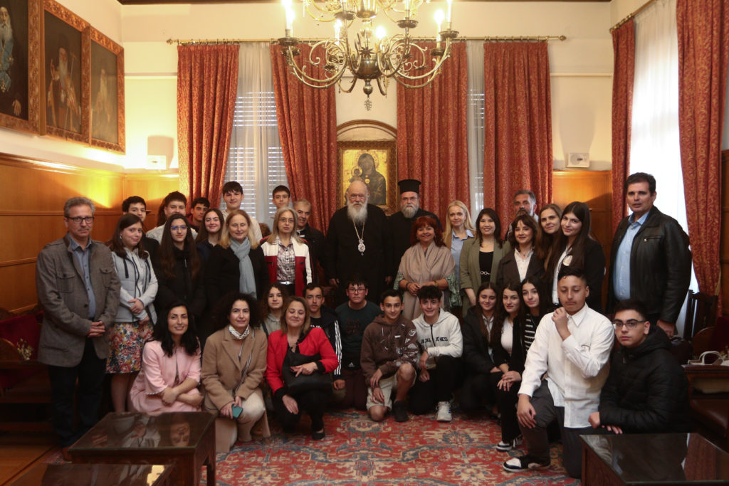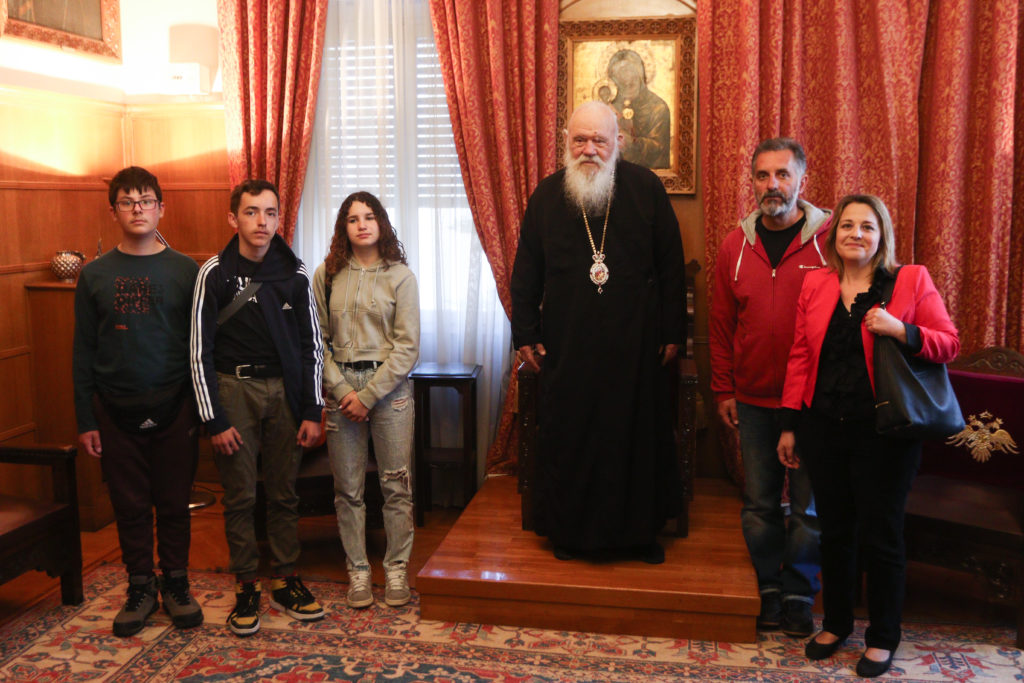Οι μαθητές, συνοδευόμενοι από τον Γραμματέα της Ειδικής Συνοδικής Επιτροπής, Αρχιμανδρίτη Θεόκλητο Μέντη, εκπροσώπους του Υπουργείου Παιδείας, αλλά και τους Εκπαιδευτικούς τους, επισκέφθηκαν τον Μακαριώτατο, για να πάρουν την ευχή του πριν την αναχώρησή τους για την εκπαιδευτική εκδρομή στην Καλαμάτα.