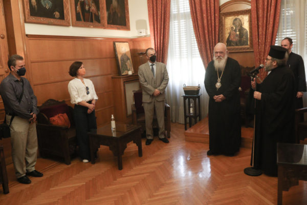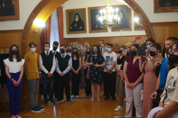 Μαθητές που βραβεύτηκαν στον Πανελλήνιο διαγωνισμό δημιουργίας ταινίας μικρού μήκους με θέμα: «Μνήμες Μικράς Ασίας-Πόντου: 1922-2022», που διοργάνωσε η Γενική Γραμματεία Θρησκευμάτων του Υπουργείου Παιδείας και Θρησκευμάτων και η Ειδική Επιτροπή Πολιτιστικής Ταυτότητος της Ιεράς Συνόδου της Εκκλησίας της Ελλάδος, με αφορμή την συμπλήρωση 100 ετών από τη Μικρασιατική Καταστροφή επισκέφθηκαν σήμερα το πρωί τον Αρχιεπίσκοπο Αθηνών και πάσης Ελλάδος κ.κ. Ιερώνυμο.