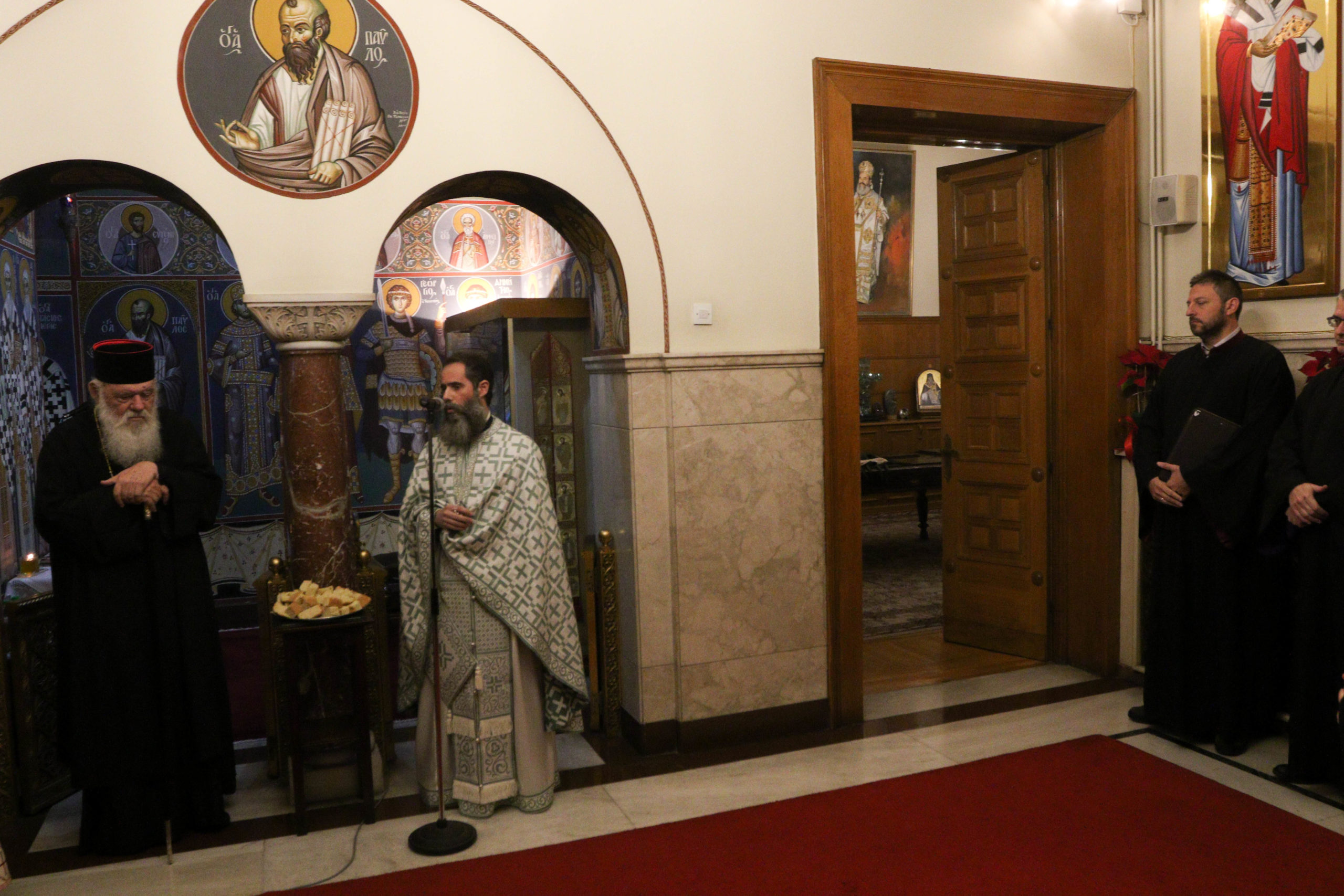 Μετά την Θεία Λειτουργία ο π. Βαρνάβας ευχήθηκε στον Αρχιεπίσκοπο για την επέτειο της εκλογής του και αναφέρθηκε στο σημαντικό έργο που επιτελείται στην Αρχιεπισκοπή. «Καθημερινά γινόμαστε μάρτυρες ότι όλη σας ημέρα αναλώνεται για το πώς θα διακονήσετε τον Θεό και τον συνάνθρωπο, μέσω της διακονίας ασθενών, αστέγων, φοιτητών, με την δημιουργία ιδρυμάτων, φοιτητικών στεγών, κατασκηνώσεων», τόνισε ο Πρωτοσύγκελλος και ευχήθηκε πολλά τα έτη του και ευλογημένα.