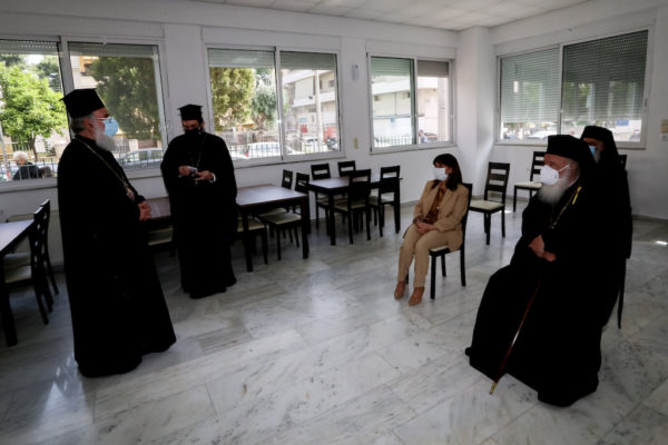 Την Πρόεδρο της Δημοκρατίας υποδέχθηκε στην είσοδο της Δομής ο Μακαριώτατος Αρχιεπίσκοπος Αθηνών και πάσης Ελλάδος κ. Ιερώνυμος, τον οποίο πλαισίωναν ο πρόεδρος της «ΣΥΝΥΠΑΡΞΙΣ» Μητροπολίτης Ιλίου, Αχαρνών και Πετρουπόλεως κ. Αθηναγόρας και ο Μητροπολίτης Νικαίας κ. Αλέξιος.