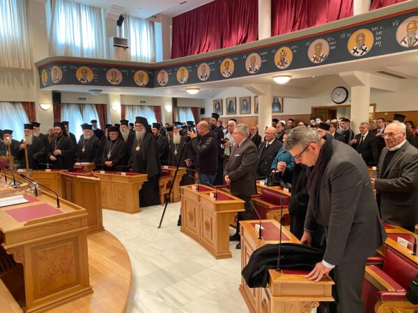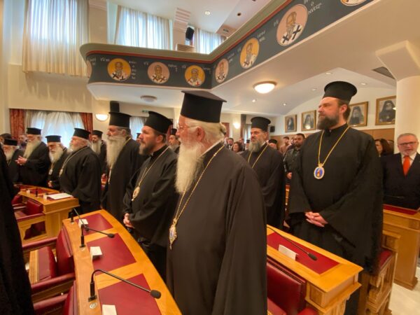 Ο Αρχιεπίσκοπος ευλόγησε την Πρωτοχρονιάτικη Βασιλόπιτα της Ιεράς Συνόδου της Εκκλησίας της Ελλάδος στην μεγάλη αίθουσα συνεδριάσεων της Ιεραρχίας της Εκκλησίας της Ελλάδος και αμέσως μετά ευχήθηκε σε όλους υγεία, χρόνια πολλά και καλά.