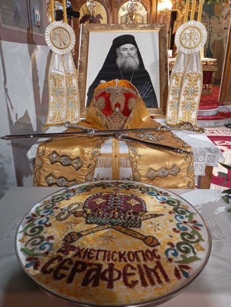 Περαίνοντας τὴν ὁμιλία μοῦ ἐπιθυμῶ ὁλοψύχως νὰ συγχαρῶ καὶ νὰ ἐπαινέσω τὸν Σεβασμιώτατο Ποιμενάρχη Σας, Μητροπολίτη Θεσσαλιώτιδος καὶ Φαναριοφερσάλων κ. Τιμόθεο, Ἱεράρχη σεμνό, φιλόκαλο καὶ ὄτρηρό, ὁ ὅποιος με πολὺ σεβασμὸ στὴν μνήμη τοῦ ἄοιδίμού Πατρὸς καὶ Ἀρχιεπισκόπου ἤμών Σεραφεὶμ διοργάνωσε τὴν σημερινὴ τελετὴ καὶ μερίμνησε γιὰ τὴν κατασκευὴ καὶ τὴν τοποθέτηση τῆς Προτομῆς τοῦ Σεπτοῦ καὶ ὄντως Μεγάλου Πρωθιεράρχου, στὸν προαύλιο χῶρο τοῦ Ἱεροῦ τούτου Ναοῦ.