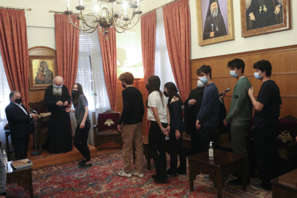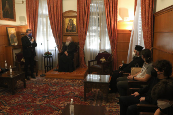Οι καθηγητές ευχαρίστησαν τον Αρχιεπίσκοπο για την υποδοχή και τον ενημέρωσαν ότι στο πλαίσιο εργασίας που ανέλαβαν οι μαθητές για τα ιερά μυστήρια και την Αγία Φιλοθέη την Αθηναία, εξέφρασαν την επιθυμία να συναντηθούν μαζί του, ώστε να πάρουν την ευχή του, και στη συνέχεια να επισκεφθούν το Αρχοντικό Μπενιζέλου, πατρικό σπίτι της Αγίας Φιλοθέης στην Πλάκα.