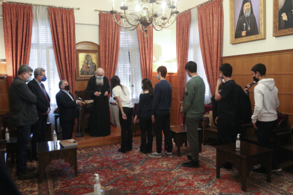 Μαθητές της Α’ τάξης Λυκείου από το Κολλέγιο Ψυχικού επισκέφθηκαν σήμερα το πρωί τον Αρχιεπίσκοπο Αθηνών και πάσης Ελλάδος κ. Ιερώνυμο συνοδευόμενοι από τον υποδιευθυντή και καθηγητές του Σχολείου, καθώς και τον π. Ιωάννη Λάμπρου, καθηγητή Θρησκευτικών του Σχολείου.