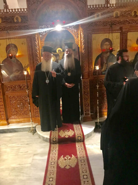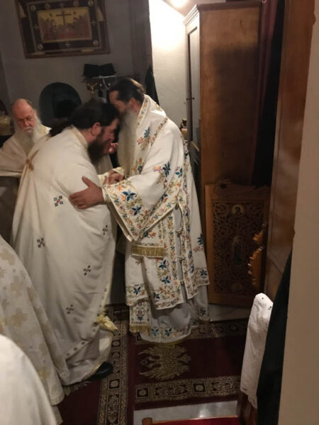 Τον Θεοφιλέστατο πλαισίωσαν ο Αρχιμ. Τιμόθεος Λαϊβεράς, Αρχιερατικός Σαλαμίνος, ο Αρχιμ. Αχίλλιος Τσούτσουρας, Προϊστάμενος του Μητροπολιτικού Ναού της Ιεράς Μητροπόλεως Λαρίσης και Τυρνάβου, οι κληρικοί της Ιεράς Αρχιεπισκοπής Αθηνών π. Χρήστος Βλάχος και π. Νικόλαος Βλαβιανός, ο π. Βασίλειος Ρουπάκας της Ιεράς Μητροπόλεως Θηβών και Λεβαδείας και ο Αρχιδιάκονος του Αγίου Θηβών π. Δημήτριος Αναδιώτης. Κατά την διάρκεια της Ιεράς Αγρυπνίας προσήλθε στην Μονή και ο οικείος Ποιμενάρχης κ. Γεώργιος για να ευχηθεί στην εορτάζουσα Καθηγουμένη Γερόντισσα Ευπραξία αλλα και στην επίσης εορτάζουσα αδελφή της Μονής μοναχή Ολυμπιάδα. Με ιδιαίτερα πατρικά λόγια αγάπης ο κ. Γεώργιος απηύθυνε λόγο οικοδομής και ευχαρίστησε τον Επίσκοπο Θεσπιών κ. Συμεών για την ιερουργία του στην αγρυπνία αλλά και για την εν γένει συμπαράστασή του στις ανάγκες της Μονής. Επίσης, κάλεσε τους πάντες σε εκτενή προσευχή για την αποτροπή του κινδύνου της πύρινης λαίλαπας που έπληξε την περιοχή Ασωπίας και Τανάγρας της Μητροπόλεως. Κατά την διάρκεια της αγρυπνίας τον θείο λόγο κήρυξε ο κ. Συμεών, ο οποίος αναφέρθηκε στη σημασία της οσιακής βιοτής μέσα στο σύγχρονο θορυβώδη κόσμο. «Το οσιακό παράδειγμα βιοτής αποτελεί την μόνη εναλλακτική πρόταση ζωής σε ένα κόσμο που κινείται σε ιλιγγιώδεις ρυθμούς θορύβου, ανασφάλειας, ανταγωνισμών, συγκρούσεων, αντιπαραθέσεων και αδιεξόδων. Η ησυχία και η ειρήνη των λογισμών είναι ο μόνος φωτεινός δρόμος μέσα στο σκοτάδι ενός κόσμου που ψάχνει νόημα πολλές φορές μέσα σε ομιχλώδη και θολά τοπία» ανέφερε ο κ. Συμεών. Στο τέλος ο κ. Συμεών αναφέρθηκε στο πρόσωπο της εορτάζουσας Καθηγουμένης γερόντισσας Ευπραξίας, ευχαρίστησε τον Μητροπολίτη Θηβών κ. Γεώργιο για την ευλογία της αγρυπνίας και για την αδιάπτωτη και διηνεκή του αγάπη, ενώ μετέφερε και τις ευχές του Μακαριωτάτου κ. Ιερωνύμου.