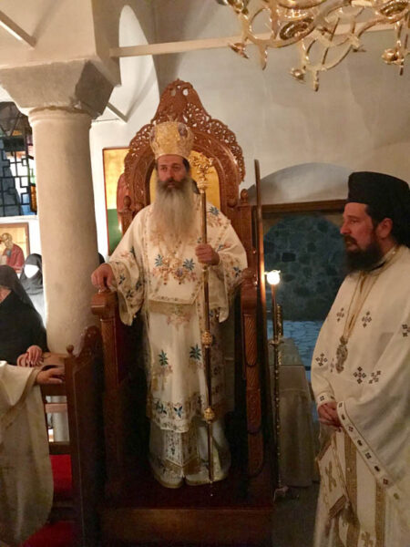 Με την άδεια και ευλογία του Σεβασμιωτάτου Μητροπολίτου Θηβών και Λεβαδείας κ. Γεωργίου ο Πρωτοσύγκελλος της Ιεράς Αρχιεπισκοπής Αθηνών, Θεοφιλέστατος Επίσκοπος Θεσπιών κ. Συμεών, τέλεσε ιερά αγρυπνία στην Ιερά Μονή Αγίου Ιωάννου Θεολόγου Μαζαρακίου Βαγίων Βοιωτίας επί τη εορτή της Κοιμήσεως της Αγίας Άννης και επί τη μνήμη των Οσίων Μητέρων Ευπραξίας και Ολυμπιάδος.