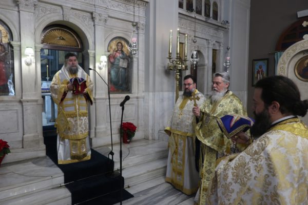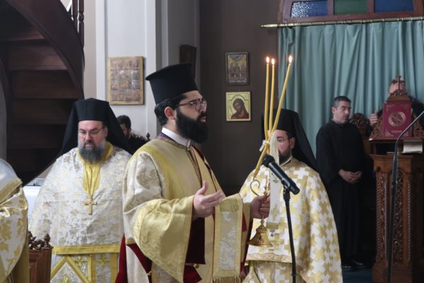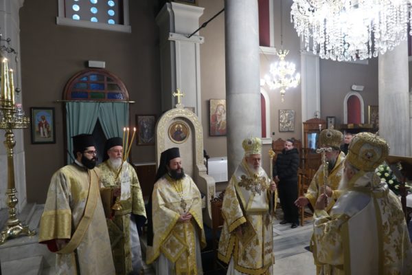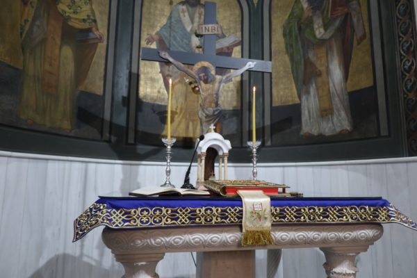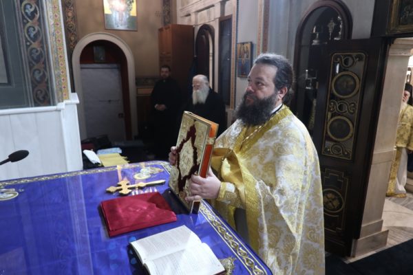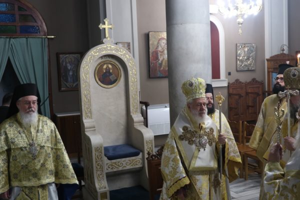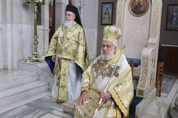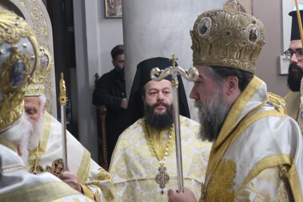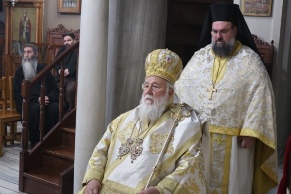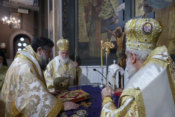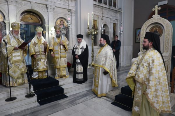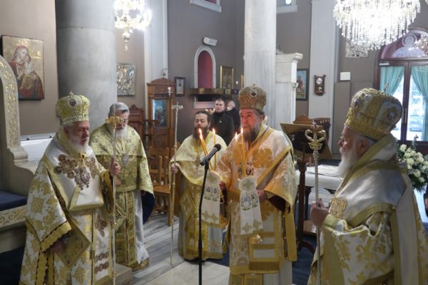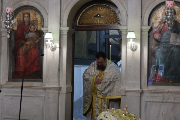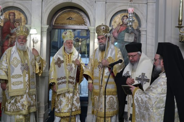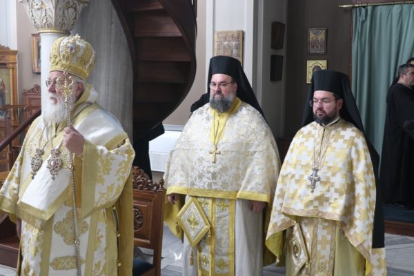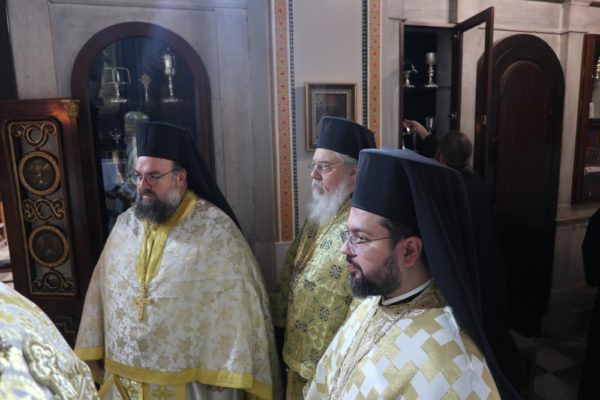 Συνευχήκαν εντός του ιερού Βήματος οι Σεβασμιώτατοι Μητροπολίτες Βρεσθένης κ. Θεόκλητος, Κυθήρων κ. Σεραφείμ, και ο Πανιερώτατος Μητροπολίτης Φαναρίου κ. Αγαθάγγελος.