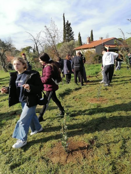 Τέλος οι μαθητές συνοδευόμενοι από τους καθηγητές τους, κα Κυριακή Μαντέλλου, Διευθύντρια, κα Βάσω Κολοβού καθ. Φυσικής Αγωγής, κ. Σταύρο Τερζή, θεολόγο και κ. Ευάγγελο Τάτση, καθ. τεχνολογίας, πραγματοποίησαν μια συμβολική, αλλά βαθιά ουσιαστική πράξη: τη φύτευση δέντρων στην πυρόπληκτη περιοχή της Ιεράς Μονής Πεντέλης, ως σημείο ελπίδας, μνήμης και αναγέννησης. Η δενδροφύτευση πραγματοποιήθηκε χάρη στην ευγενική προσφορά και βοήθεια του κ. Κωνσταντίνου Στράμπι. Η εκπαιδευτική αυτή δράση που σχετίστηκε με πολλά και ουσιαστικά θέματα πραγματοποιήθηκε σε συνεργασία με τον οργανισμό Symplexis και αποτελεί τμήμα του ευρωπαϊκού προγράμματος Inter Mu-Se. Η προστασία του κόσμου μας είναι πράξη πίστης, ευθύνης και ελπίδας.
