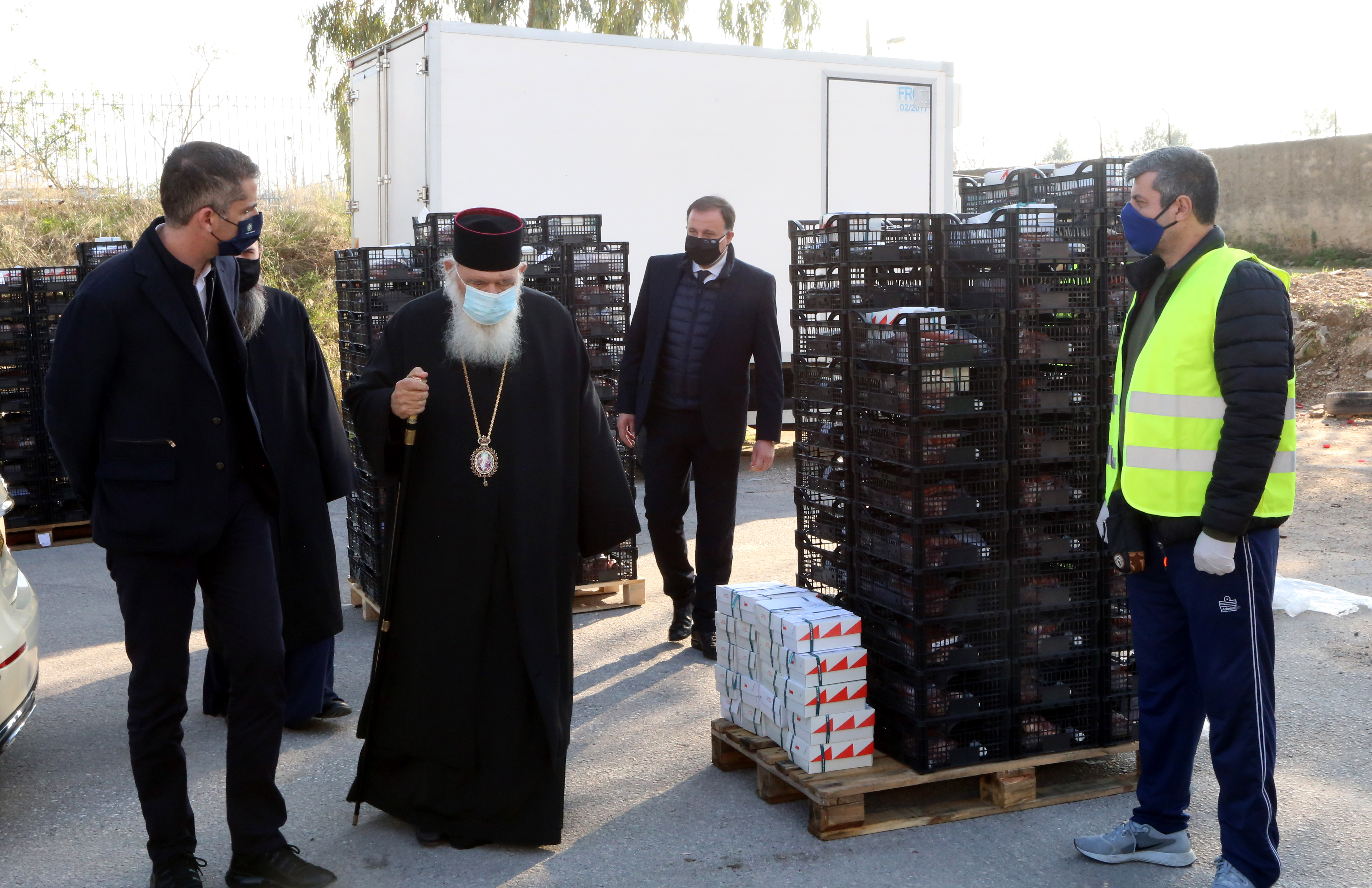 Τον Αρχιεπίσκοπο συνόδευε ο Γενικός Διευθυντής του Φιλανθρωπικού Οργανισμού «Αποστολή» κ. Κωστής Δήμτσας και τους υποδέχτηκε ο Δήμαρχος Αθηναίων κ. Κώστας Μπακογιάννης, ο οποίος τους ξενάγησε στους χώρους προετοιμασίας των δεμάτων στον Ελαιώνα. Στο χώρο όπου οι εργαζόμενοι του Δήμου προετοιμάζουν τα χιλιάδες πακέτα τροφίμων, που φτάνουν στα σπίτια των συμπολιτών μας, οι οποίοι  έχουν ανάγκη, σε εκείνους που ανήκουν σε ευάλωτες και ευπαθείς ομάδες. Ο Αρχιεπίσκοπος αναφέρθηκε στην αξία της συνεργασίας, τονίζοντας πως «όλα αυτά είναι ο καρπός μιας συνεργασίας. Για άλλη μία φορά ενώσαμε τις δυνάμεις μας.» Ευχήθηκε να περάσουμε Χριστούγεννα όσο το δυνατόν πιο άνετα και υπογράμμισε ότι οι μέρες που έρχονται θα είναι πιο δύσκολες, «γι’ αυτό πρέπει η συνεργασία μας να είναι μεγαλύτερη και συντονισμένη, ώστε να μην χάνονται δυνάμεις». Ευχαρίστησε, άλλωστε, τόσο τον Δήμαρχο και τους συνεργάτες του, όσο και τον κ. Δήμτσα και τους συνεργάτες της Αρχιεπισκοπής.