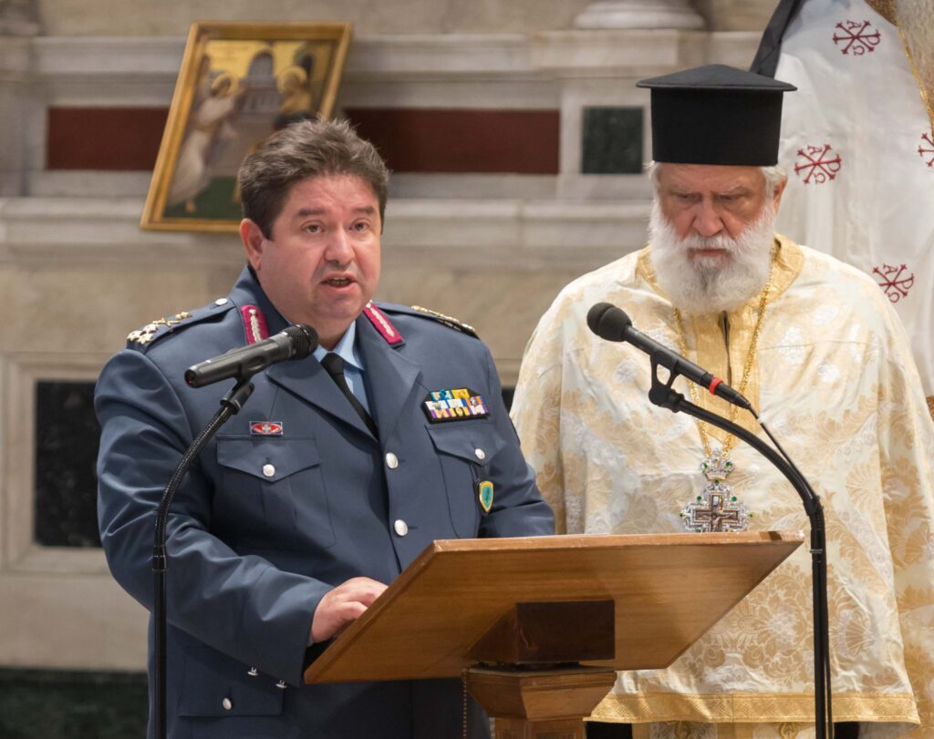 Στον Ιερό Καθεδρικό Ναό Αθηνών πραγματοποιήθηκε πρωινές ώρες δοξολογία και ανάγνωση της Ημερήσιας Διαταγής από τον Αρχηγό της Ελληνικής Αστυνομίας, Αντιστράτηγο Μιχαήλ Καραμαλάκη, όπου –μεταξύ άλλων- τονίστηκε: