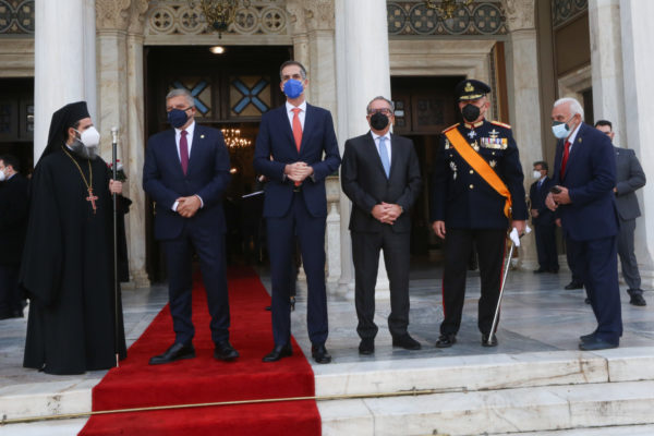 Παρέστησαν ακόμη Υπουργοί, Βουλευτές, ο Πρόεδρος του ΚΙΝ.ΑΛ. Κ. Νίκος Ανδρουλάκης, ο Περιφερειάρχης Αττικής κ. Γεώργιος Πατούλης, ο Δήμαρχος Αθηναίων κ. Κώστας Μπακογιάννης και ο Αρχηγός ΓΕΕΘΑ, Στρατηγός Κωνσταντίνος Φλώρος, οι Αρχηγοί των Γενικών Επιτελείων Στρατού, Αεροπορίας και Ναυτικού καθώς και οι Αρχηγοί των Σωμάτων Ασφαλείας.