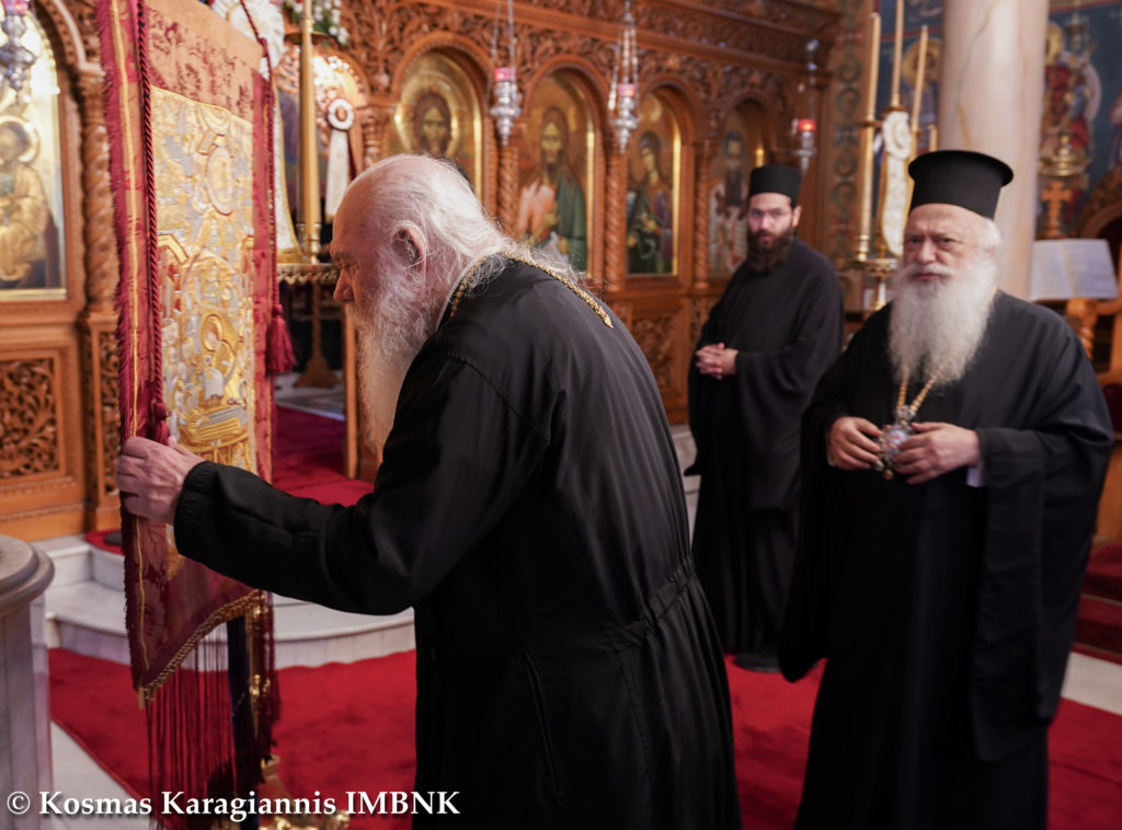Ο Μακαριώτατος Αρχιεπίσκοπος Αθηνών και πάσης Ελλάδος κ. κ. Ιερώνυμος μετά την άφιξη του προσκύνησε στο Καθολικό της Ιεράς Μονής την εφέστιο και θαυματουργό Ιερά Εικόνα της Παναγίας Δοβρά καθώς και το ιστορικό λάβαρο της Επαναστάσεως του 1821 από την Ιερά Μονή Αγίας Λαύρας Καλαβρύτων.