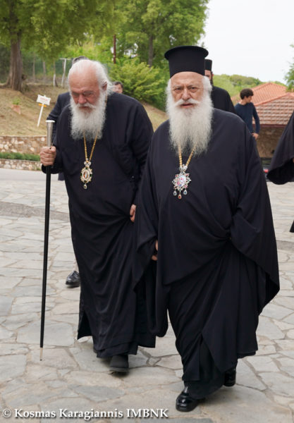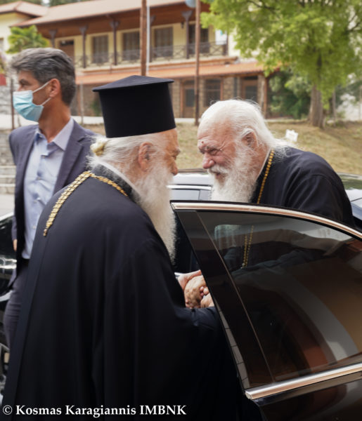 Τον Μακαριώτατο Αρχιεπίσκοπο Αθηνών και πάσης Ελλάδος κ.κ. Ιερώνυμο και τη συνοδεία του υποδέχθηκε στον αύλειο χώρο της Ιεράς Μονής ο Σεβασμιώτατος Μητροπολίτης Βεροίας, Ναούσης και Καμπανίας κ. Παντελεήμων, συνοδευόμενος από τον Πρωτοσύγκελο της Ιεράς Μητροπόλεως μας Αρχιμ. Αθηναγόρα Μπίρδα και πατέρες της Ιεράς Μονής.