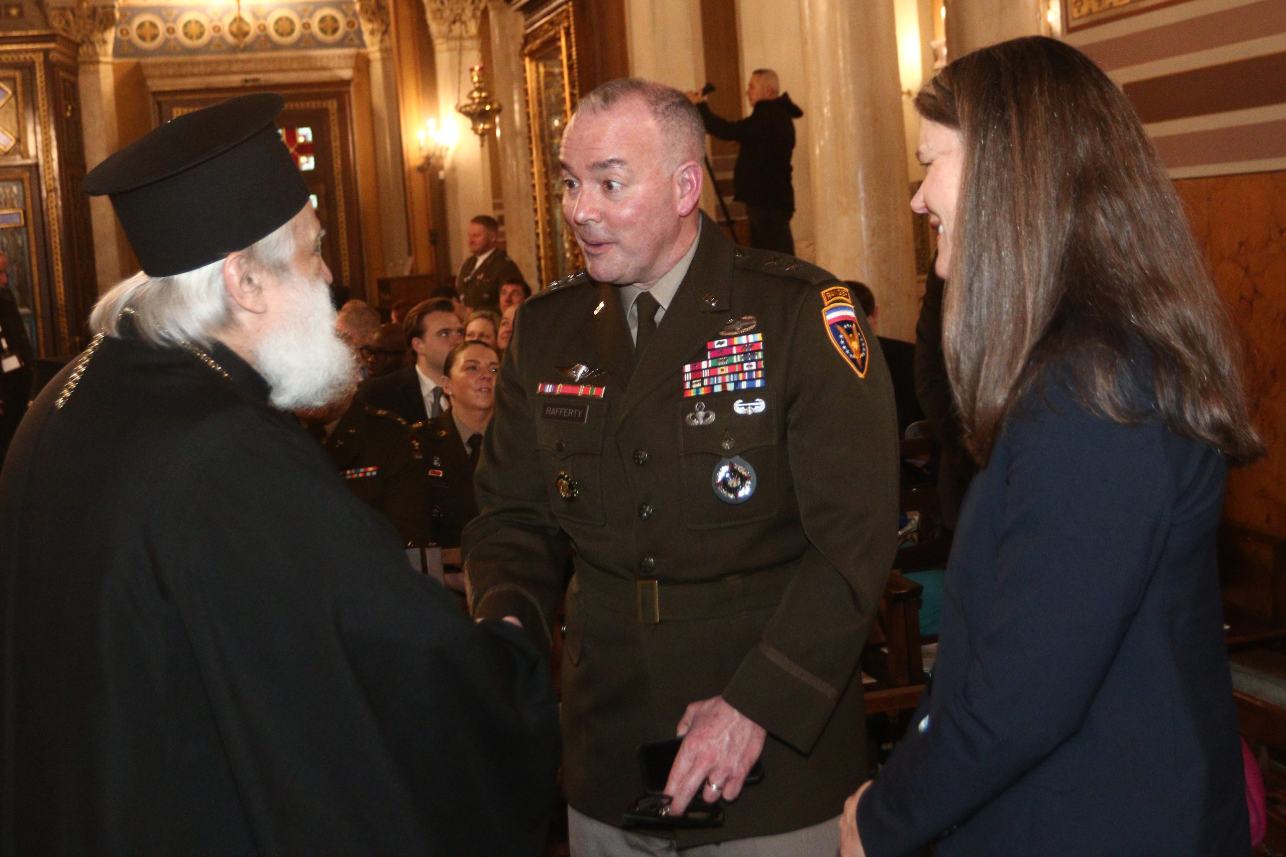 Παρέστησαν επίσης ο Σεβ. Μητροπολίτης Περιστερίου κ. Γρηγόριος, ο Πολιτικός Διοικητής του Αγίου Όρους, πρώην Υπουργός Εθνικής Άμυνας και Επίτιμος Αρχηγός ΓΕΣ, κ. Αλκιβιάδης Στεφανής, εκπρόσωποι της Στρατιωτικής Ηγεσίας των Ενόπλων Δυνάμεων, χριστιανικών δογμάτων και άλλων θρησκειών.