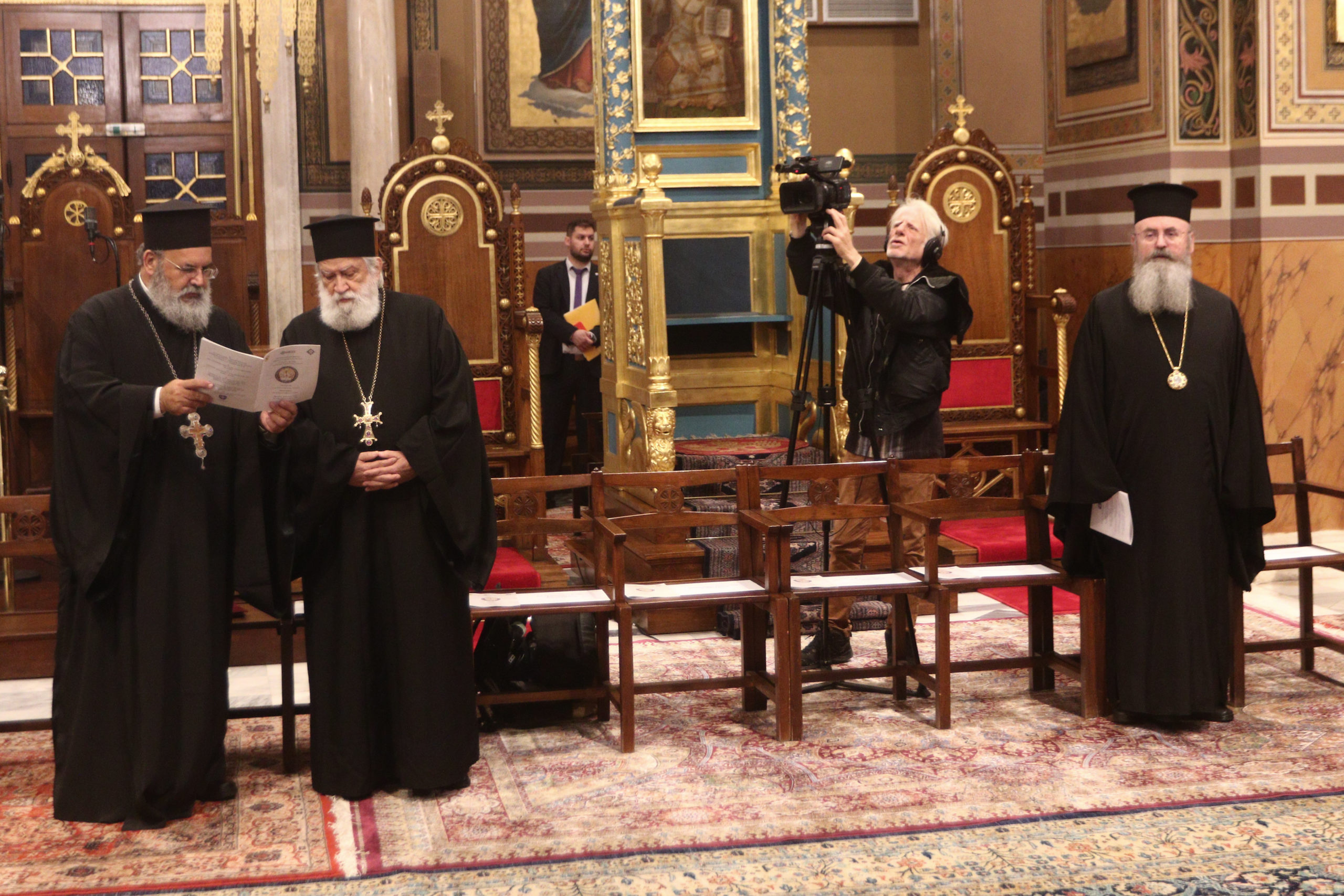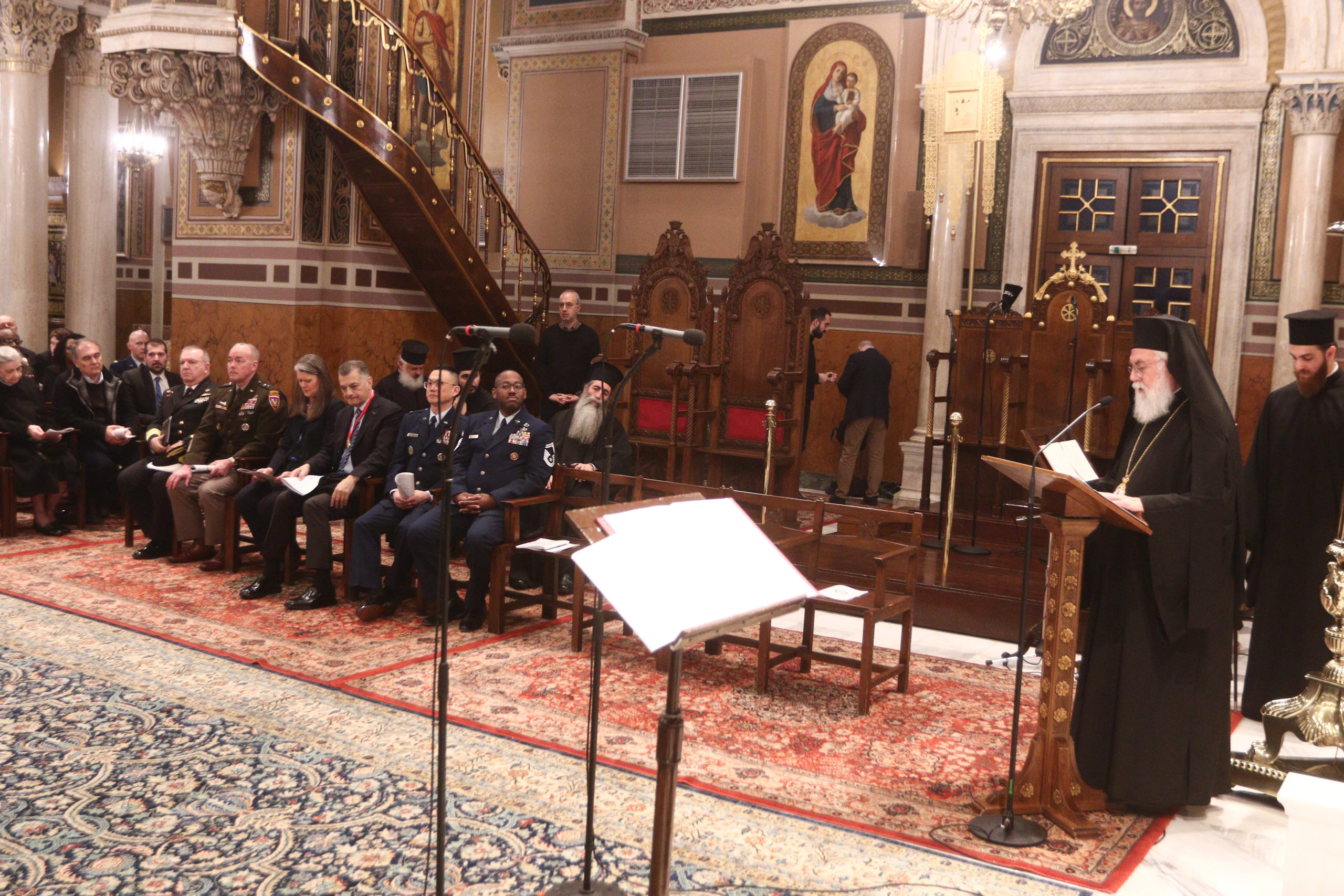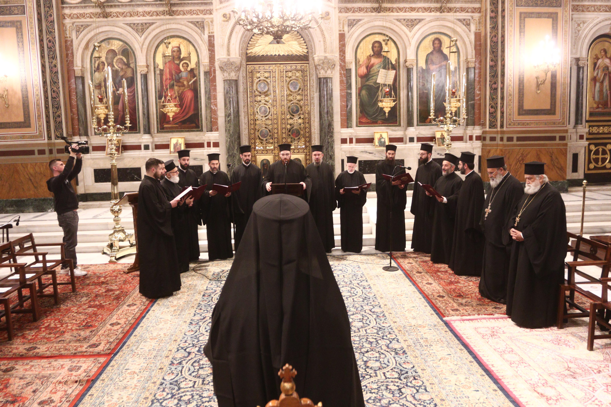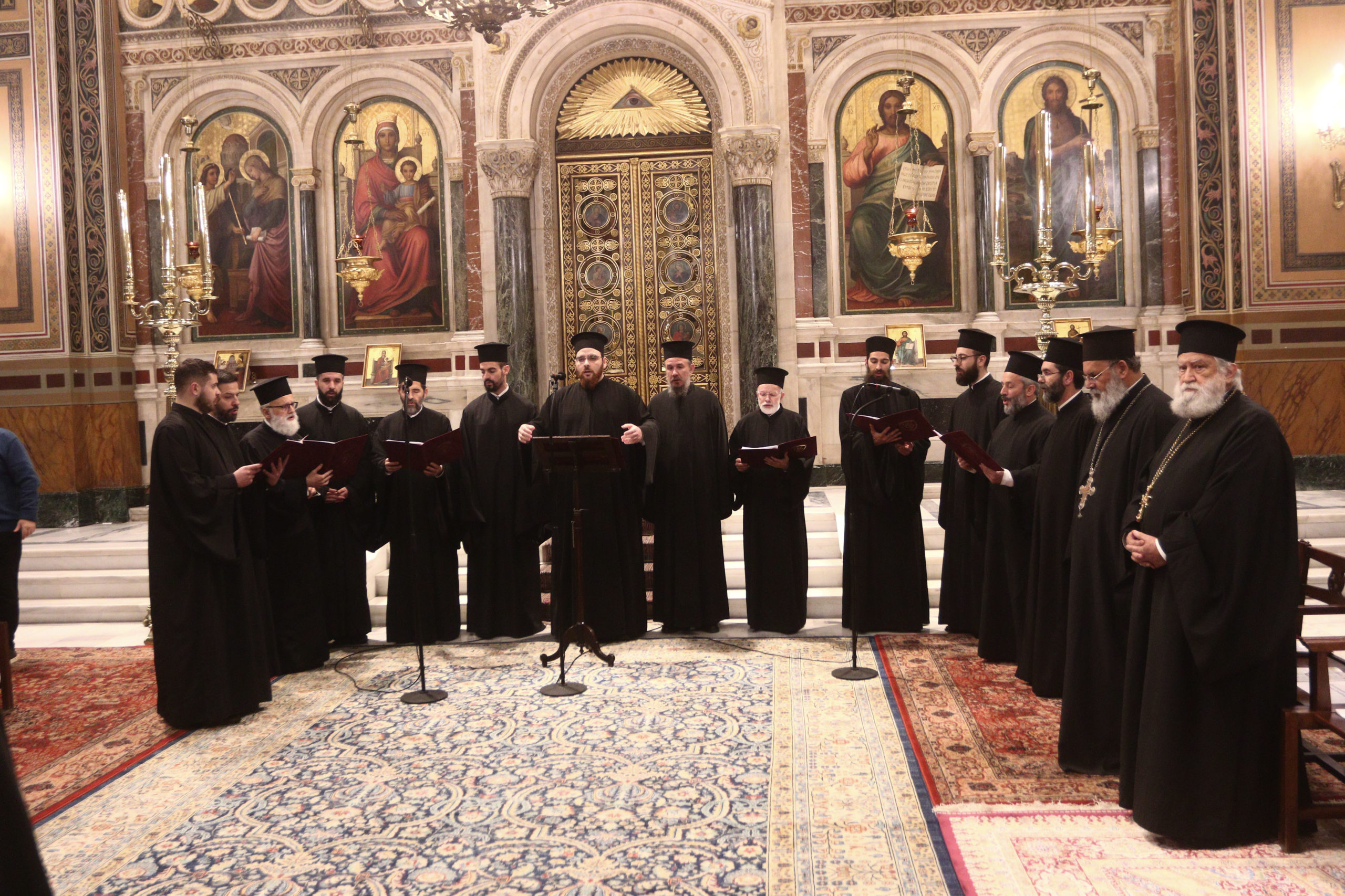 Η τελετή ξεκίνησε με την απόδοση ύμνων από τον χορό Στρατιωτικών Ιερέων. Ακολούθησε το καλωσόρισμα από τον Προϊστάμενο του Μητροπολιτικού Ναού Αθηνών, Πρωτοπρεσβύτερο π. Θωμά Συνοδινό.