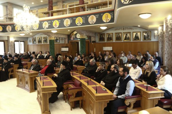 Σε αυτήν παρέστησαν ο Θεοφιλέστατος Επίσκοπος Σταυροπηγίου κ. Αλέξιος, Διευθυντής των Υπηρεσιών της Αποστολικής Διακονίας, ο Αρχιγραμματεύς της Ιεράς Συνόδου της Εκκλησίας της Ελλάδος Πανοσιολογιώτατος Αρχιμανδρίτης κ. Ιωάννης Καραμούζης, ο Γενικός Διευθυντής της Εκκλησιαστικής Κεντρικής Υπηρεσίας Οικονομικών (Ε.Κ.Υ.Ο.) Πανοσιολογιώτατος Αρχιμανδρίτης κ. Νικόδημος Φαρμάκης, ο Διευθυντής Δημοσιονομικού Ελέγχου κ. Διονύσιος Γιαννακόπουλος, κληρικοί και λαϊκοί συνοδικοί υπάλληλοι όλων των Συνοδικών Υπηρεσιών.