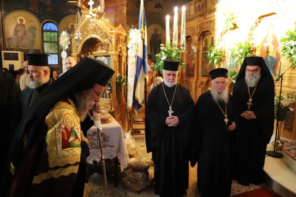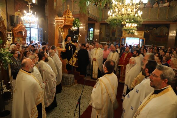 Στον πανηγυρικό εσπερινό χοροστάτησε ο Επίσκοπος Ανδρούσης Κωνστάντιος, πλαισιωμένος από ιερείς της Αρχιεπισκοπής Αθηνών και γειτονικών Μητροπόλεων.