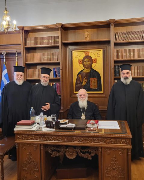 Το Δ.Σ. του Ι.Σ.Κ.Ε. επισκέφτηκε την Τετάρτη 11 Οκτωβρίου 2023 τον Μακαριώτατο Αρχιεπίσκοπο Αθηνών και πάσης Ελλάδος κ.κ. Ιερώνυμο στο διάλειμμα των συνεδριάσεων της Ιεράς Συνόδου της Ιεραρχίας της Εκκλησίας της Ελλάδος και μίλησαν επ’ ολίγον για τρέχοντα θέματα.