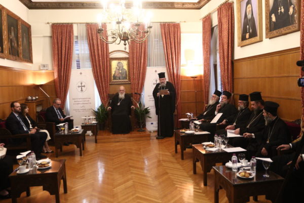 Εξεδήλωσε δε την χαρά του για το ξεκίνημα της υλοποίησης μιας νέας πρωτοβουλίας και συνεργασίας μεταξύ της Ελληνικής πολιτείας και της Εκκλησίας μας, που στοχεύει στην ψηφιακή ενίσχυση της λειτουργίας των Ιερών Μητροπόλεων και των Ενοριών τους σε πανελλήνια εμβέλεια σε συνεργασία με την Ιερά Επαρχιακή Σύνοδο της Εκκλησίας της Κρήτης, των Ιερών Μητροπόλεων των Δωδεκανήσων και της Πατριαρχικής Εξαρχίας της Πάτμου μετά από ομόφωνη απόφαση της Αγίας και Ιεράς Συνόδου του Οικουμενικού Πατριαρχείου.