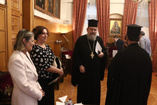 Εκ της Ιεράς Συνόδου της Εκκλησίας της Ελλάδος, ο Αρχιγραμματέας Θεοφιλέστατος Επίσκοπος Ωρεών κ. Φιλόθεος, εκ των Δωδεκανήσων ο Θεοφιλέστατος Επίσκοπος Στρατονικείας κ. Στέφανος, ο Πανοσ. Αρχιμ. Βαρνάβας Θεοχάρης, Πρωτοσύγκελλος της Ιεράς Αρχιεπισκοπής Αθηνών – Μέλος ΔΣ Ι.Π.Ε., ο Αιδεσ. Πρωτοπρ. Ηλίας Δροσινός, Μέλος ΔΣ Ι.Π.Ε., εκ του ΙΣΚΕ ο Αιδεσ. Πρωτοπρ. Νικόλαος Μωραΐτης, η Ειδική Γραμματέας Διαχείρισης Προγραμμάτων Ευρωπαϊκού Κοινωνικού Ταμείου (ΕΚΤ) εκ του Υπουργείου Εθνικής Οικονομίας και οικονομικών αξιότιμη κα Νίκη Δανδόλου, ο Επικεφαλής της Ειδικής Υπηρεσίας Συντονισμού Ταμείου Ανάκαμψης αξιότιμος κ. Ορέστης Καβαλάκης, η Προϊσταμένη της Ειδικής Υπηρεσίας Διαχείρισης στο Ε.Π. «Μεταρρύθμιση Δημόσιου Τομέα» αξιότιμη κα Αναστασία Καρκούλη-Καραμαντζάνη, η Προϊσταμένη Μονάδας Α2’ – Αξιολόγησης και Επιλογής Πράξεων της Ειδικής Υπηρεσίας Διαχείρισης στο Ε.Π. «Μεταρρύθμιση Δημόσιου Τομέα» αξιότιμη κα Βίκυ Γρίβα.