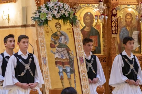Στιγμές πρωτόγνωρες και αλησμόνητες, γεμάτες συγκίνηση και κατάνυξη έζησαν οι πιστοί που κατέκλυσαν τον Ναό και τον περιβάλλοντα αυτόν χώρο, συμμετέχοντας στον μεθέορτο Αρχιερατικό Εσπερινό, που εψάλη το απόγευμα ώρα 5.00 της κυριώνυμης ημέρας, του πανηγυρίζοντος Ιερού Ναού του Αγίου Μεγαλομάρτυρος Δημητρίου του Μυροβλύτου πολιούχου και ονοματοδότου της ενορίας και του Δήμου αντιστοίχως, στο πλαίσιο των ενοριακών εορταστικών εκδηλώσεων «ΔΗΜΗΤΡΙΑ 2020», χοροστατούντος του Θεοφιλεστάτου Επισκόπου Ρωγών κ. Φιλοθέου, πλαισιωμένου από τους εφημερίους του Ιερού Ναού.