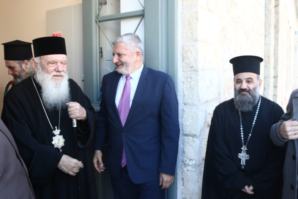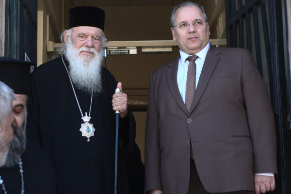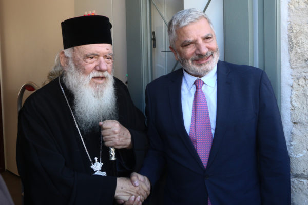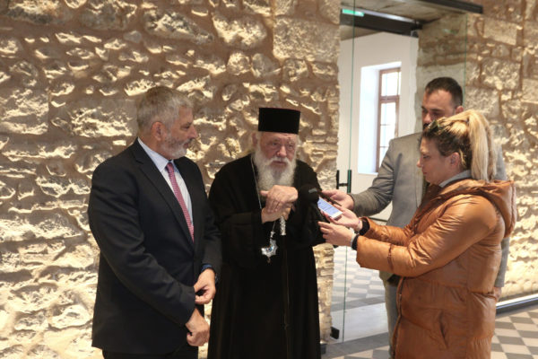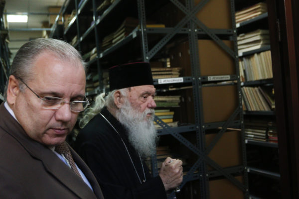 Μετά την επίσκεψη στις ανακαινισμένες εγκαταστάσεις ο Αρχιεπίσκοπος και ο Περιφερειάρχης επισκέφθηκαν το κτήριο όπου στεγάζεται Ιστορικό Αρχείο της Εκκλησίας της Ελλάδος.