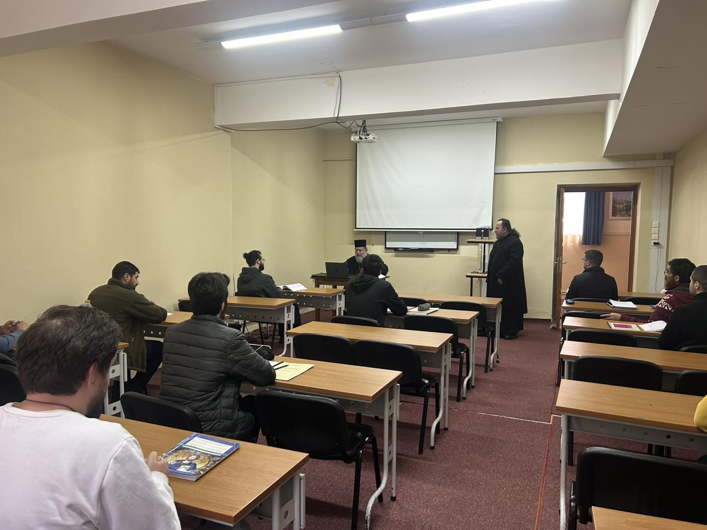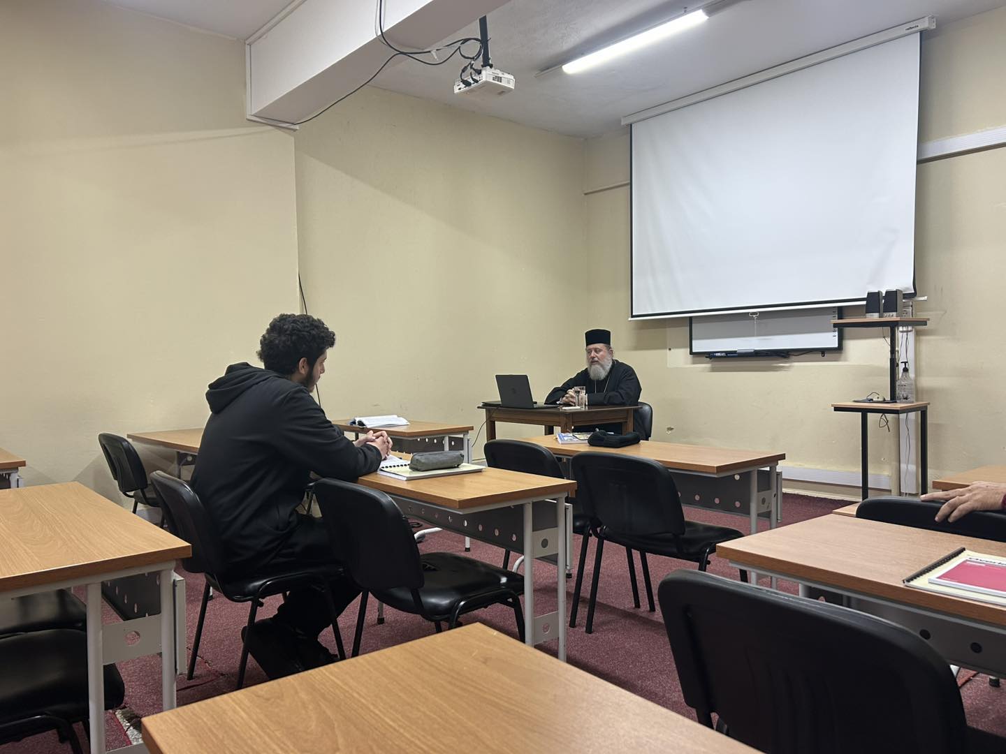 Ο Θεοφιλέστατος, με λόγο πατρικό και ποιμαντικής ευθύνης, μετέφερε αρχικά τις πατρικές ευχές και ευλογίες του Μακαριωτάτου Αρχιεπισκόπου Αθηνών και πάσης Ελλάδος κ. Ιερωνύμου και στη συνέχεια μίλησε στους φοιτητές για την πνευματική προετοιμασία τους ενόψει της μελλοντικής τους διακονίας στην Εκκλησία.