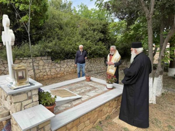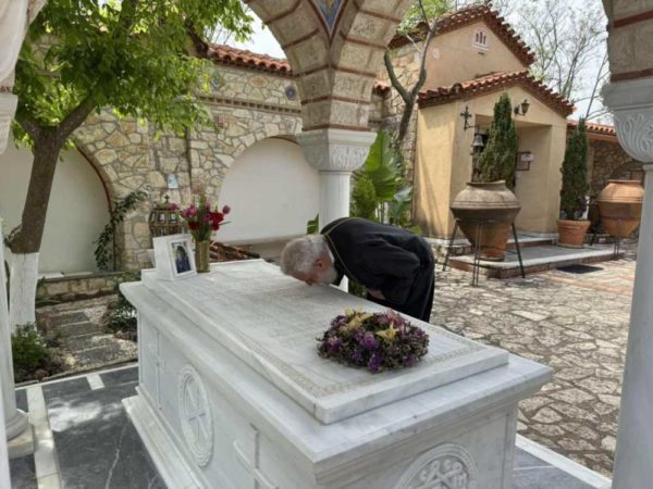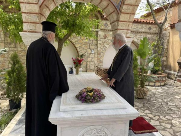Μετά την μοναστηριακή τράπεζα, κατά την οποία αντηλλάγησαν λόγοι αγάπης και αλληλοσεβασμού, στο Καθολικό της Ιεράς Μονής, εψάλη η προβλεπόμενη δέηση και αμέσως μετά ο Σεβασμιώτατος Μητροπολίτης Ναυπάκτου κ. Ιερόθεος τέλεσε νεκρώσιμο Τρισάγιο επί του τάφου του αοιδίμου δευτεροκτήτορος της Ιεράς Μονής, Αρχιμανδρίτου Χριστοδούλου.