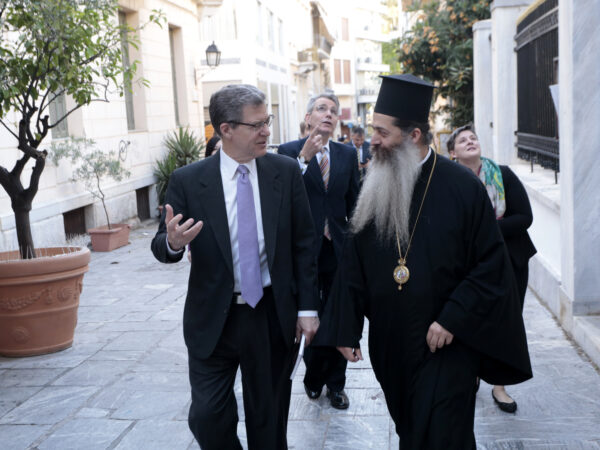 Τον Μακαριώτατο Αρχιεπίσκοπο Αθηνών και πάσης Ελλάδος κ. Ιερώνυμο επισκέφτηκε ο κ.Samuel Brownback, Πρεσβευτής των Η.Π.Α. για ζητήματα θρησκευτικών ελευθεριών. Συζήτησαν θέματα κοινού ενδιαφέροντος, ενώ τον συνόδευαν ο πρέσβης των ΗΠΑ στην Αθήνα κ. Geoffrey Pyatt και κάποιοι συνεργάτες του. Τους υποδέχθηκε ο πρωτοσύγκελλος της Ιεράς Αρχιεπισκοπής Θεοφιλέστατος Επίσκοπος Θεσπιών κ. Συμεών.
