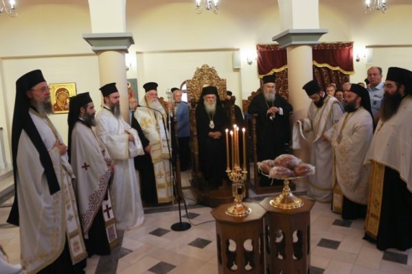 Τον Αγιασμό των Θυρανοιξίων του Ιερού Ναού Αγίου Αθανασίου – Oσίου Πορφυρίου στο Κέντρο Γεροντολογίας “Άγιος Πορφύριος” στο Δήλεσι Αττικής τέλεσε το απόγευμα της Τρίτης ο Αρχιεπίσκοπος Αθηνών και πάσης Ελλάδος κ.κ. Ιερώνυμος. Στη συνέχεια χοροστάτησε στον Μεγάλο Εσπερινό με αφορμή την 15η Ιουνίου, ημέρα κατά την οποία η Εκκλησία τιμά τη μνήμη του Οσίου Ιερωνύμου του Πενταγλώσσου και ο Μακαριώτατος άγει τα ονομαστήριά του.