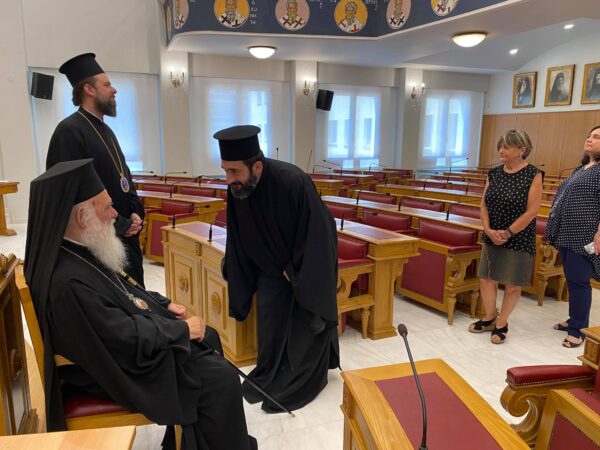 Οι υπάλληλοι ευχήθηκαν για τη εορτή του Μακαριώτατου, που ήταν στις 15 Ιουνίου, η οποία φέτος λόγω των ειδικών συνθηκών για τον περιορισμό της πανδημίας του κορωνοϊού δεν εορτάστηκαν πανηγυρικά όπως άλλες χρονιές.